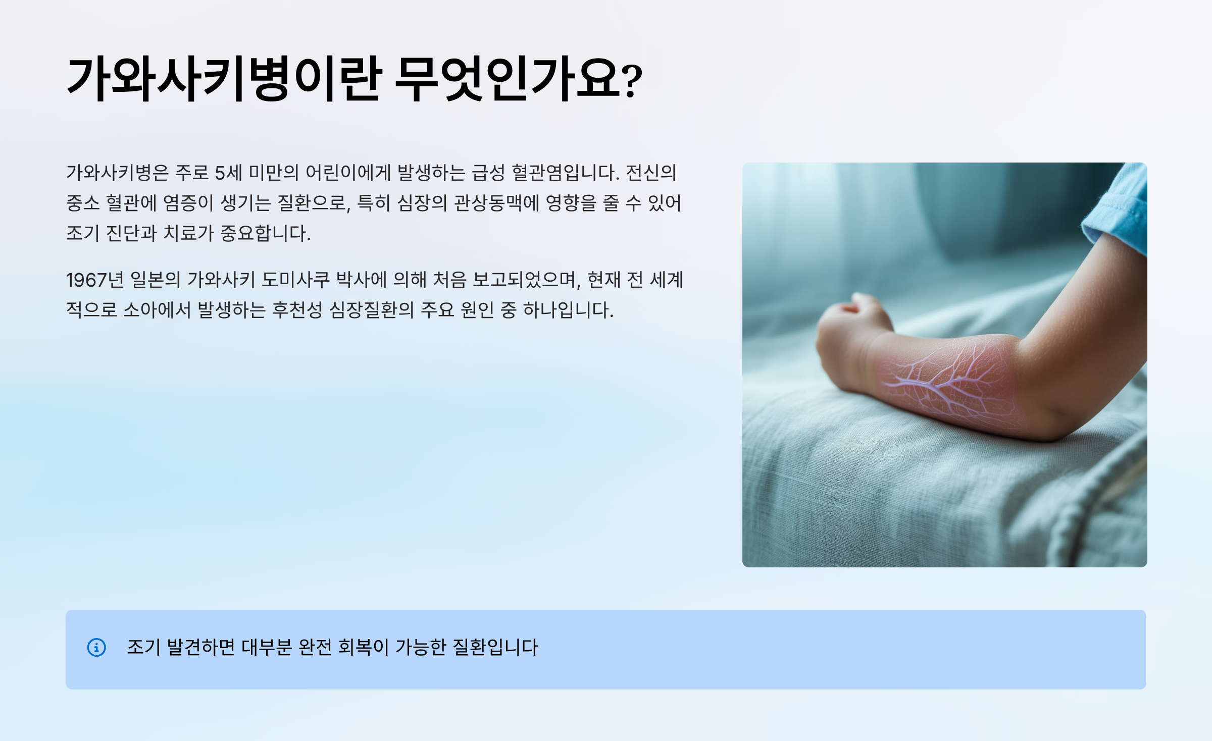 | 질환명 | 가와사키병 (Kawasaki Disease) |