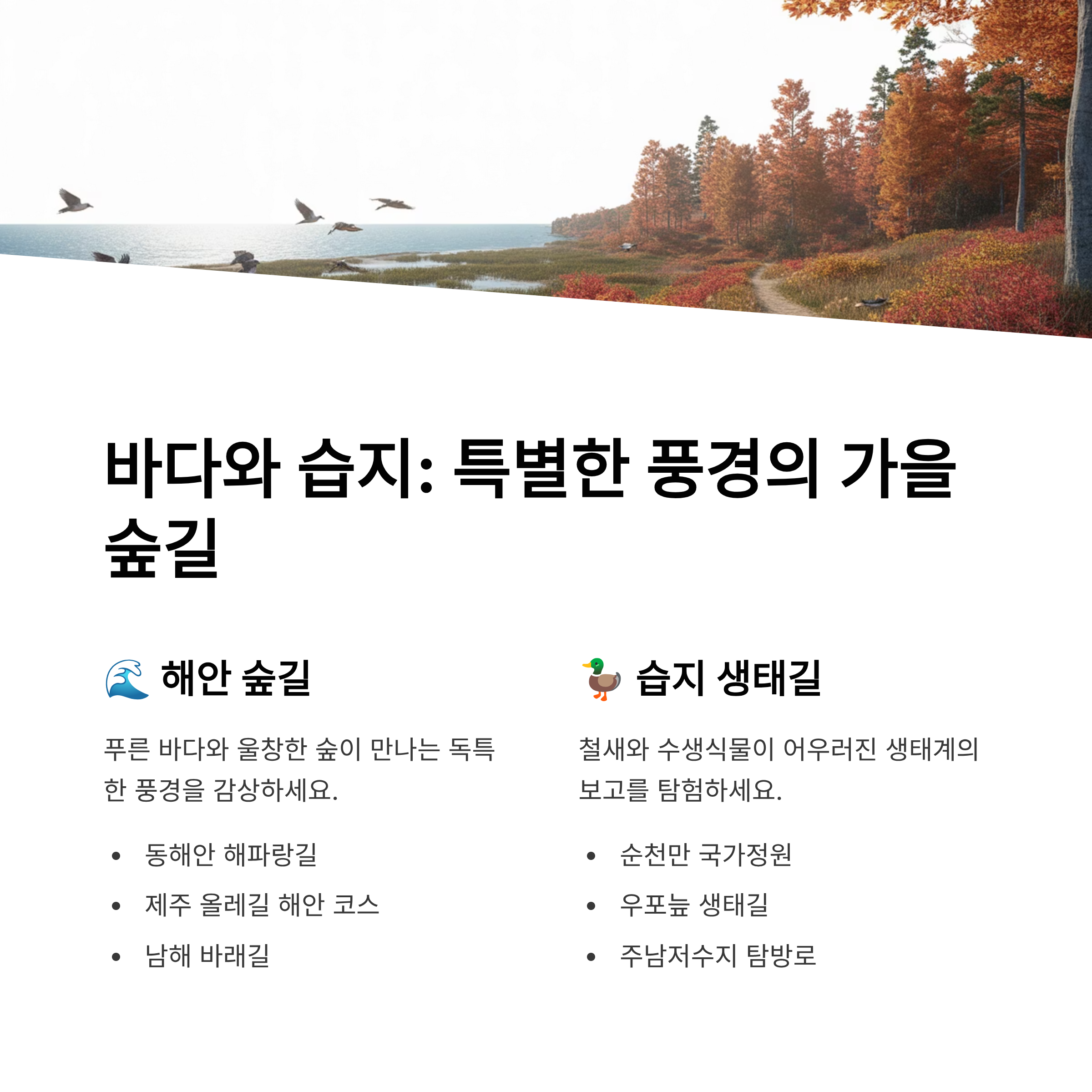 🔽 바다와 습지, 특별한 가을 풍경을 만날 수 있는 숲길 코스를 확인하세요 🔽