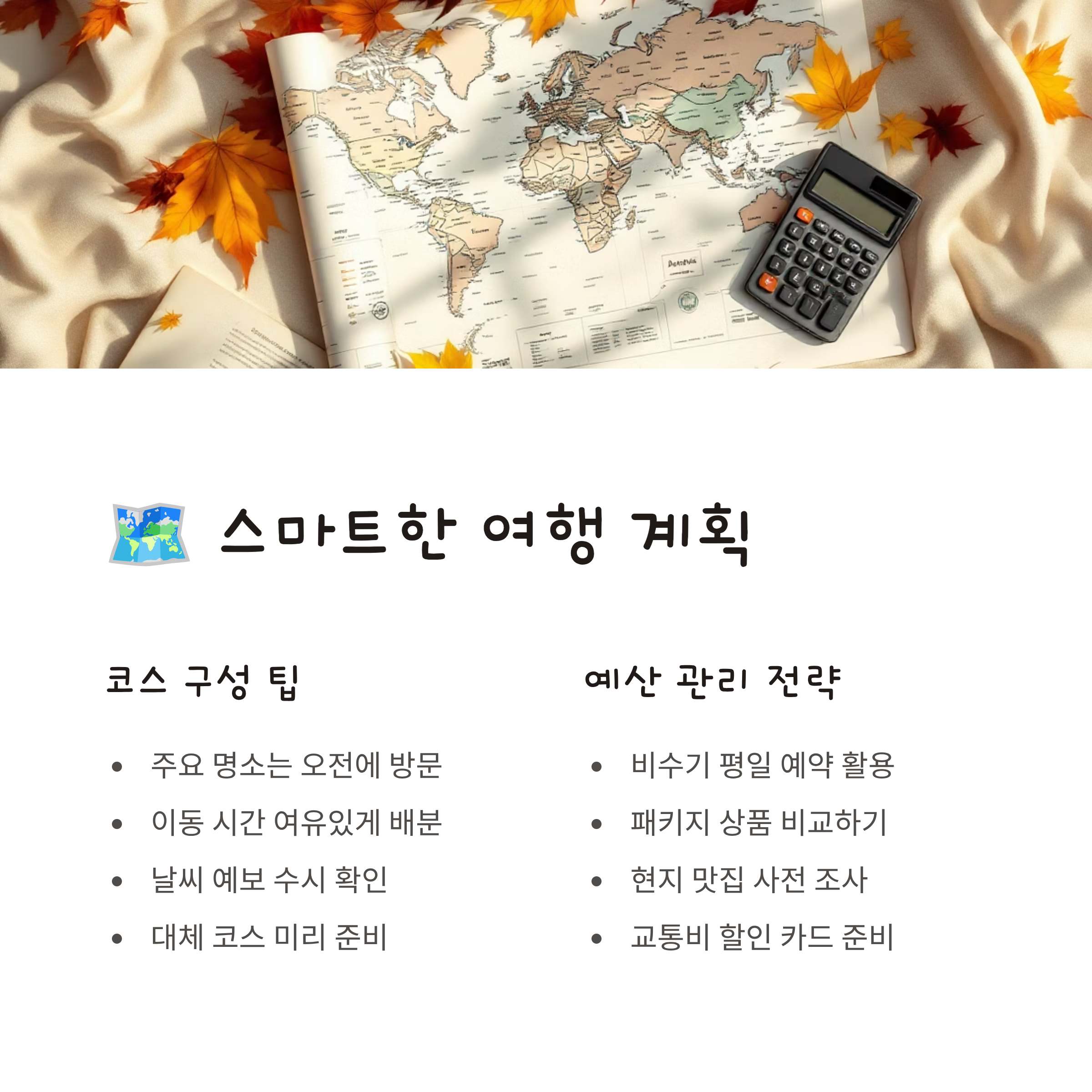 | "이 돈으로 가능하다고?" 단풍 여행 예산 50% 절약하는 6가지 비법 (1) | 2025.10.16 |
