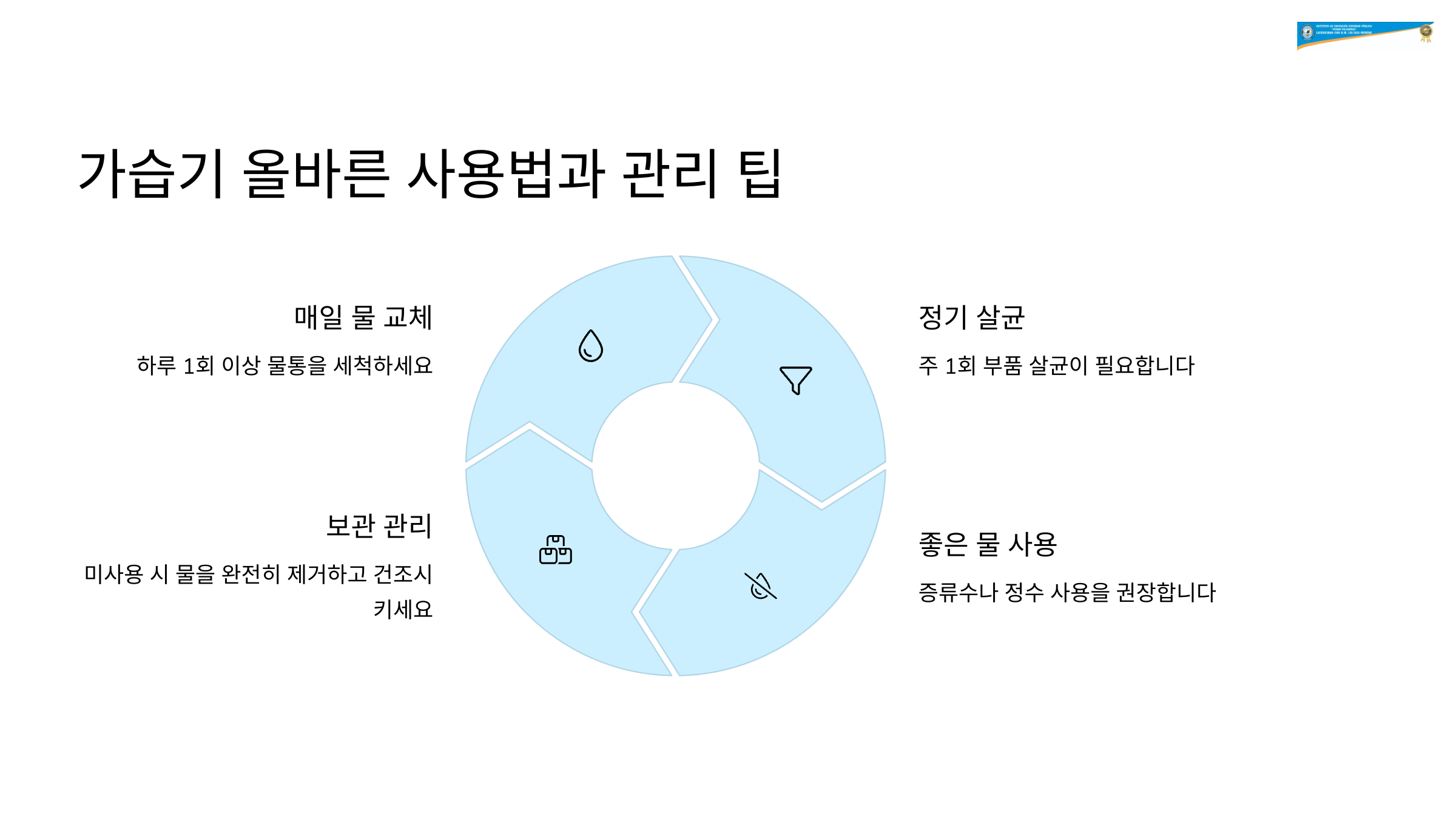 - 매일 물 교체, 주 2회 이상 세척(식초/구연산 활용)
