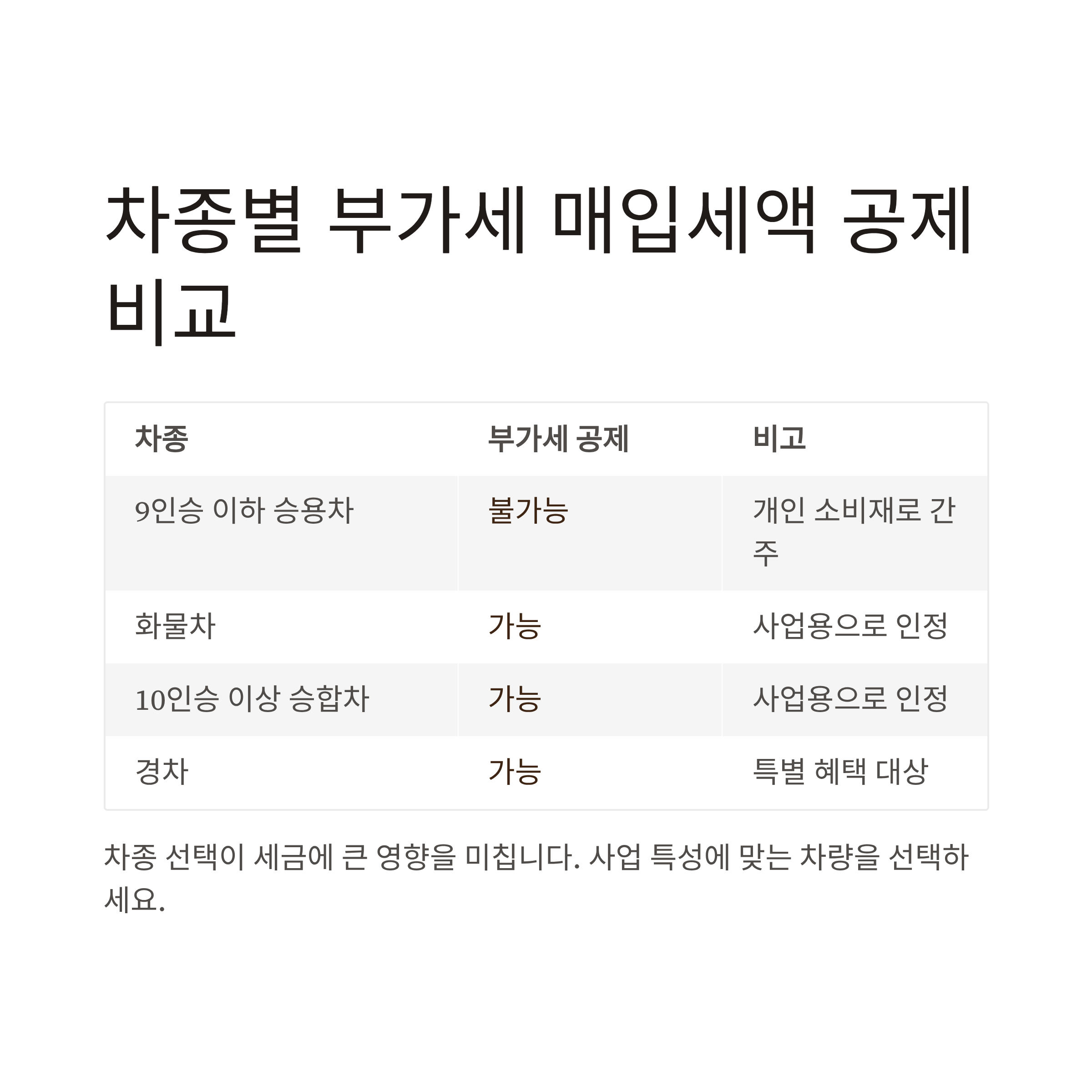 📊 차종별 부가세 매입세액 공제 여부 비교