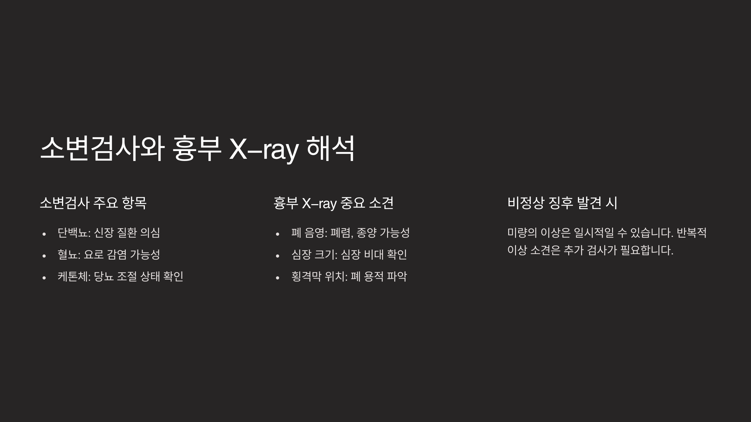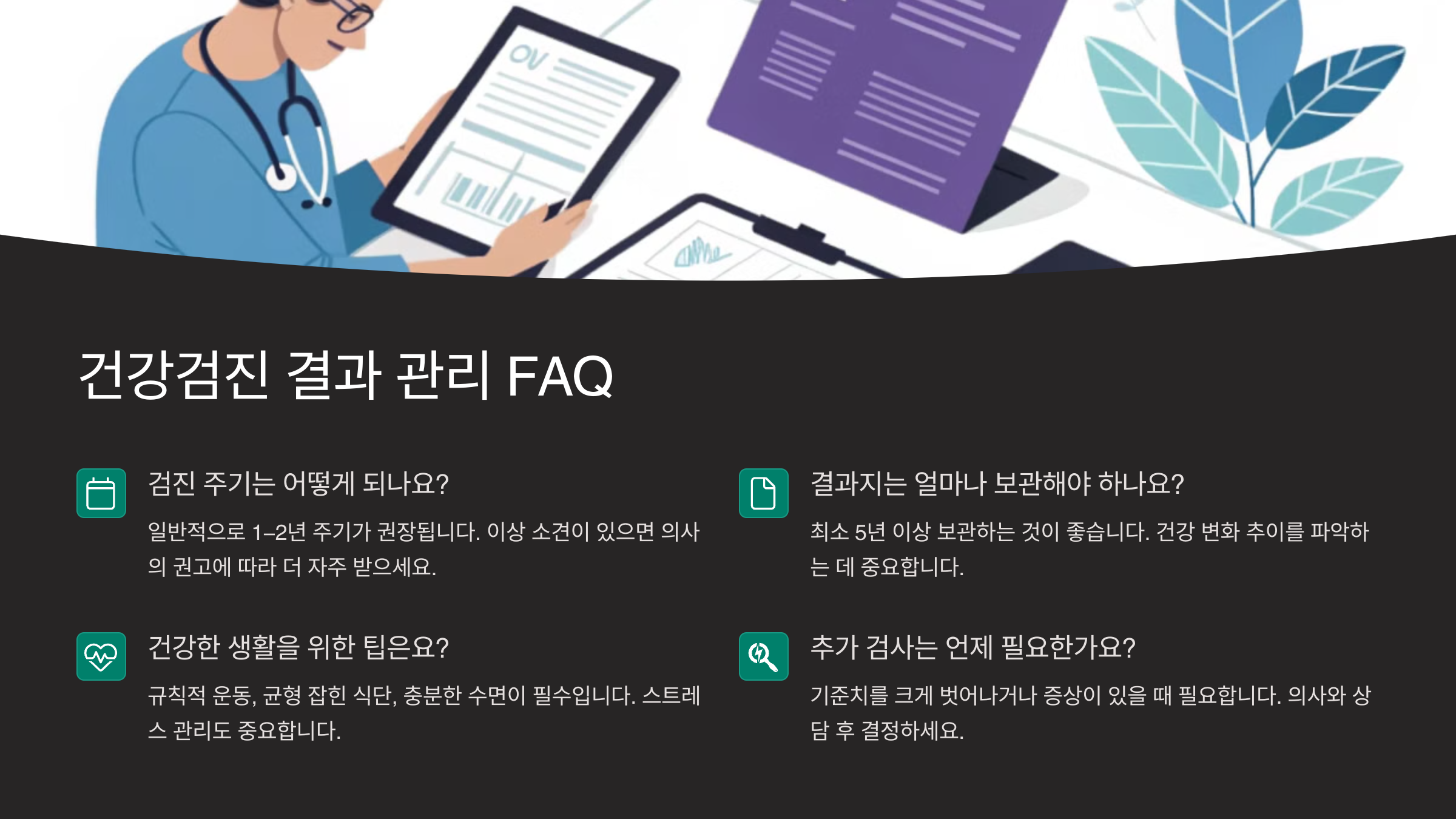 👉 마지막으로 **주의할 이상 소견 및 대응법**, 그리고 **FAQ 섹션**으로 마무리할게요! 👇