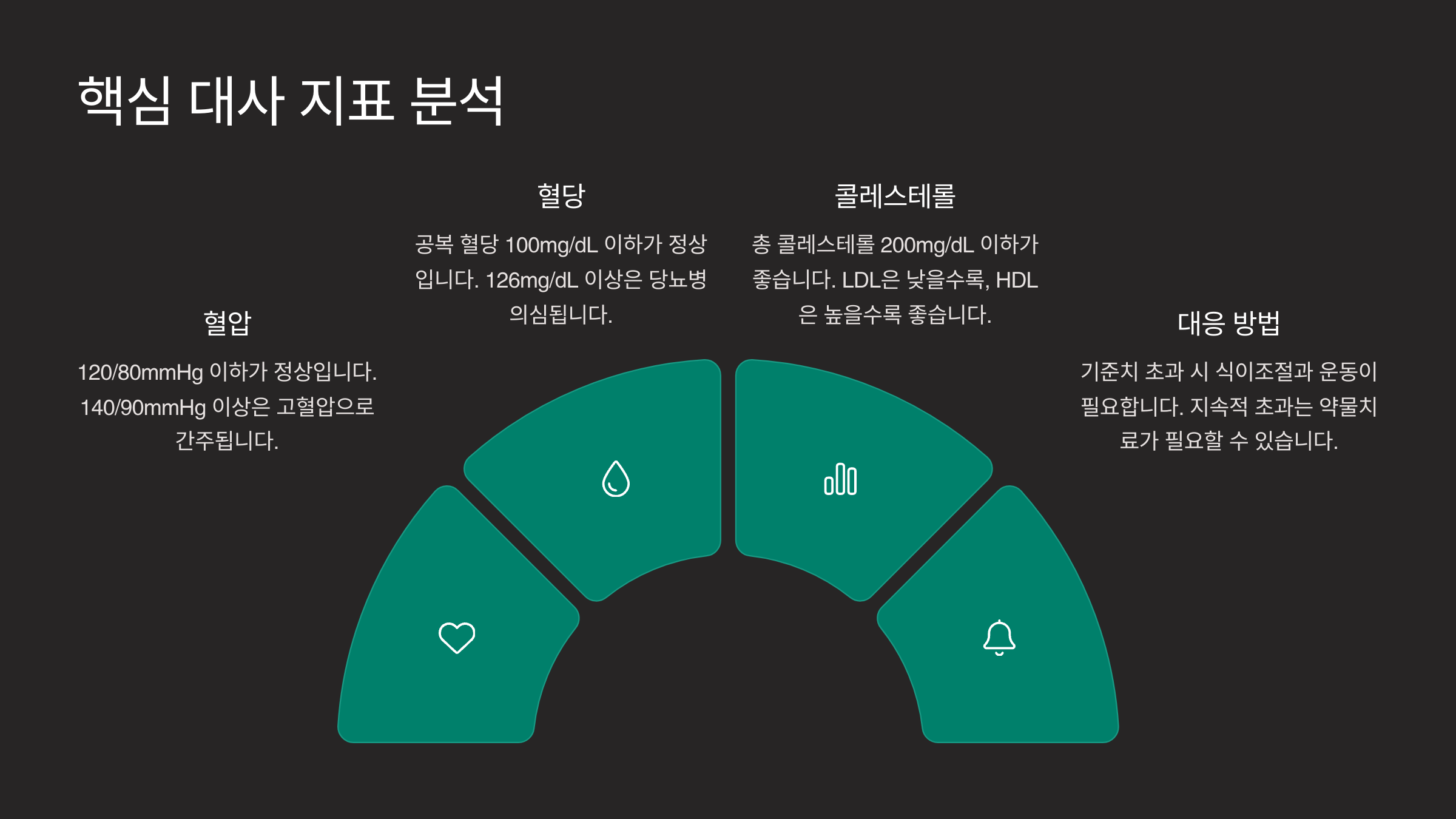 이 세 가지 수치(혈압, 혈당, 콜레스테롤)가 동시에 경계 이상이라면 '대사증후군'으로 이어질 수 있어요. 이는 심혈관계 질환의 씨앗이 되므로 반드시 생활습관을 개선하고 정기적으로 추적 검사를 받아야 해요.