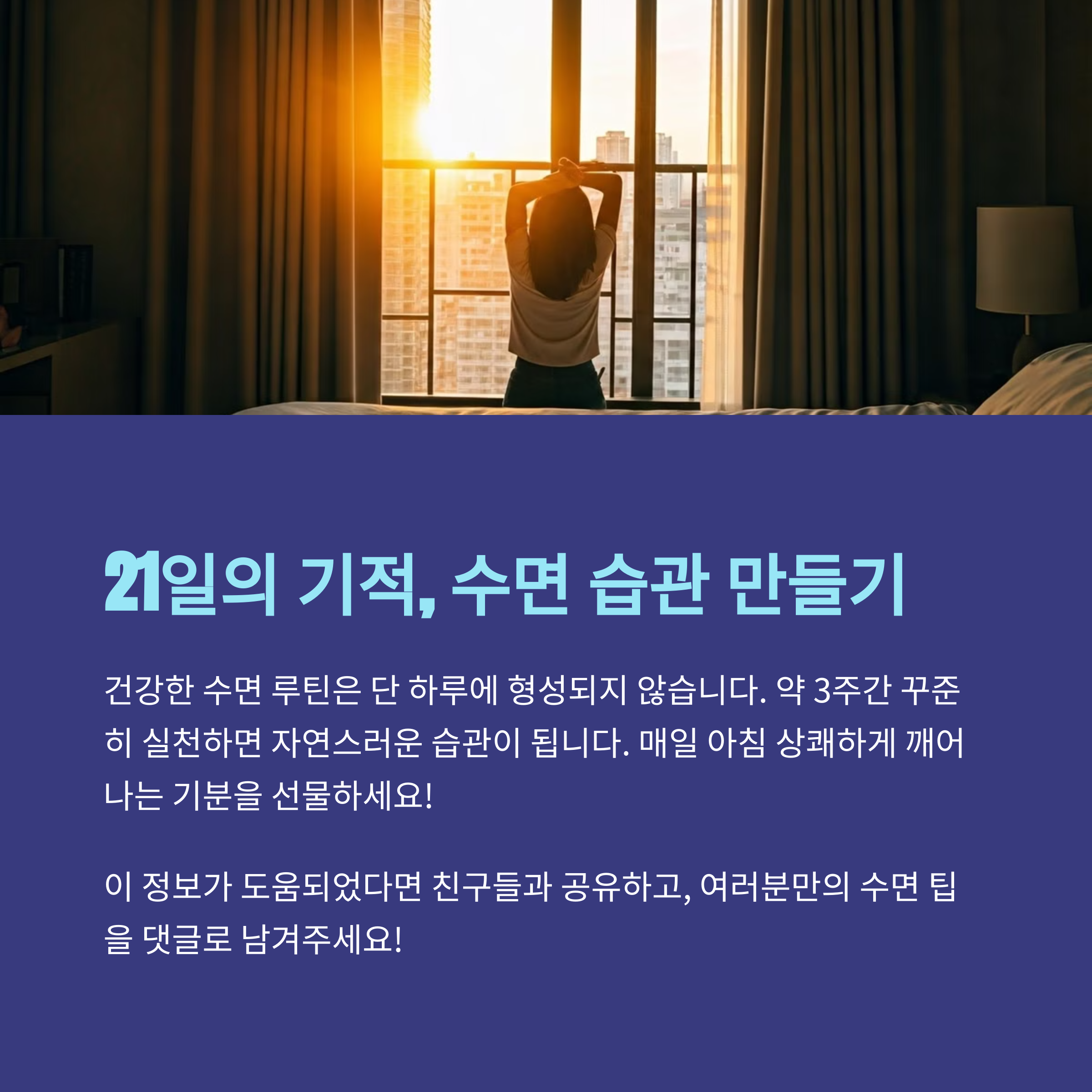 여러분은 어떤 수면 루틴을 실천하고 있나요? 경험을 공유해 주세요!