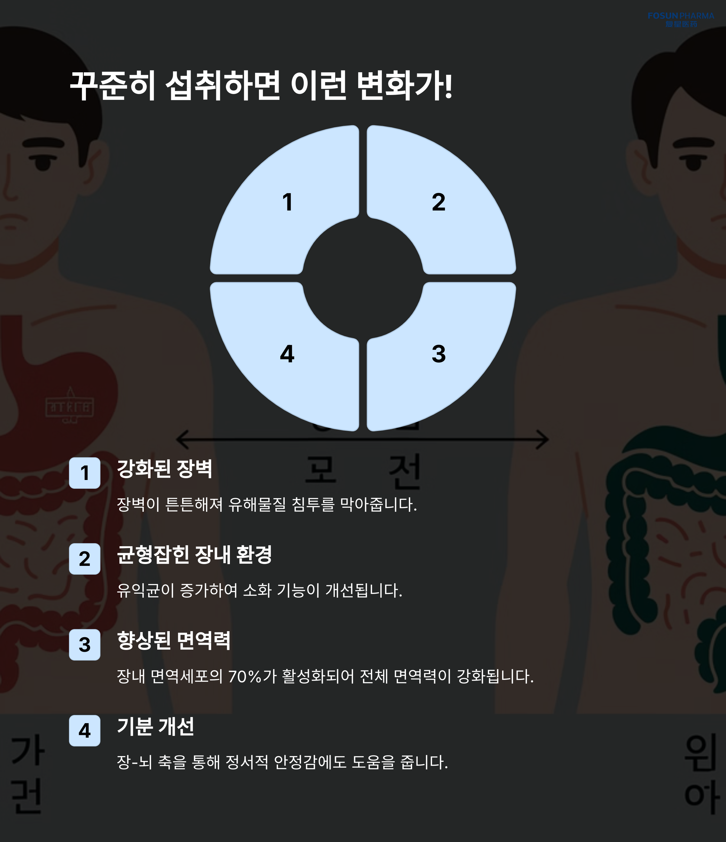 | 프로바이오틱스란? | 장내 유익균을 증가시키는 건강 보조제입니다. |