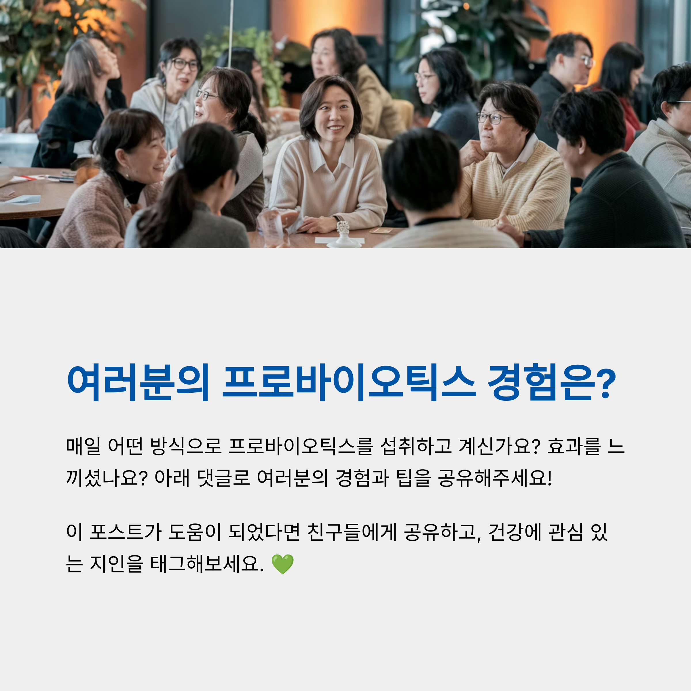 프로바이오틱스를 꾸준히 섭취하고 계신가요? 효과를 경험하셨다면 어떤 변화가 있었나요? 아래 댓글을 통해 여러분의 경험을 공유해 주세요!