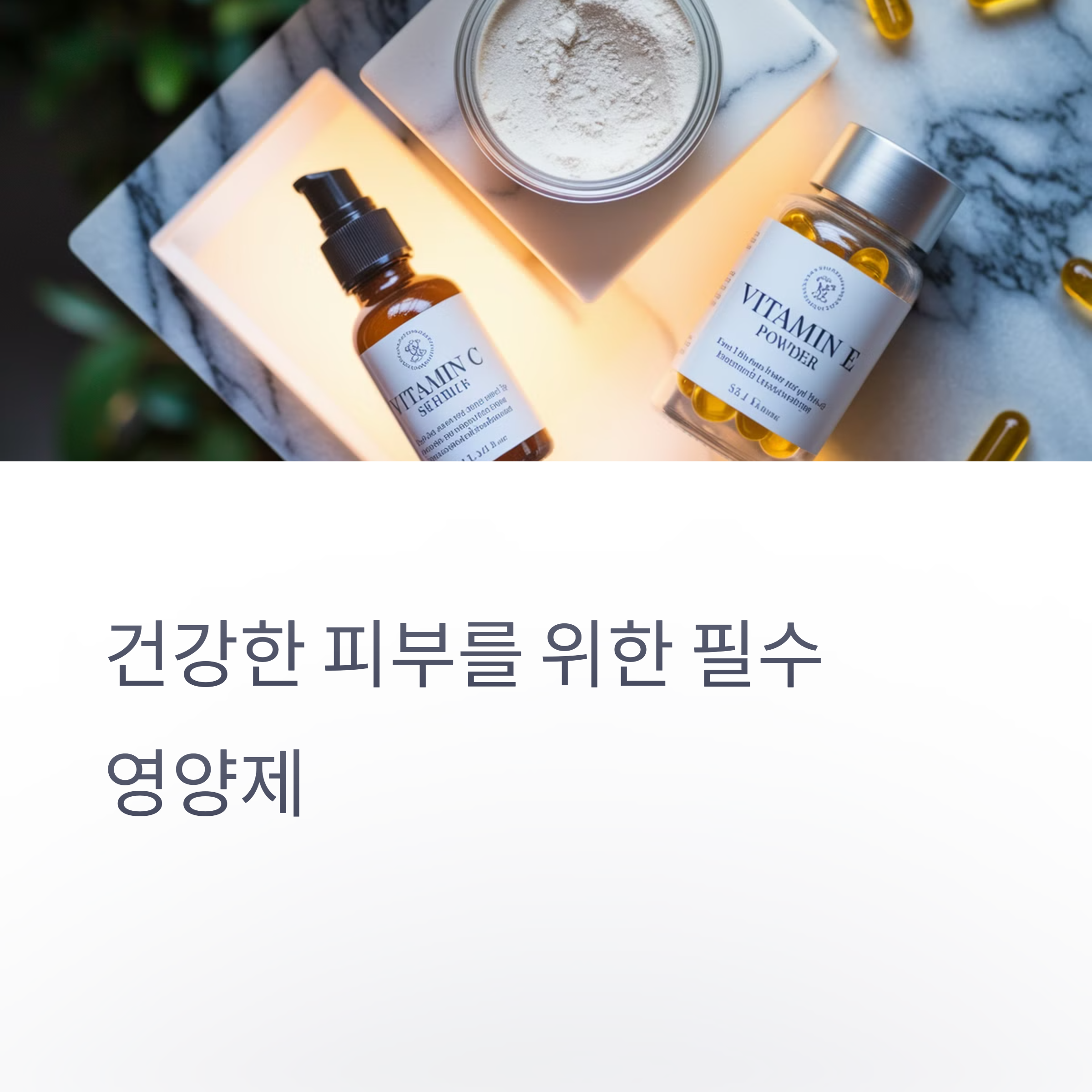 피부 건강을 위해서는 영양제를 꾸준히 섭취하는 것이 중요합니다. 비타민 C, 콜라겐, 비타민 E와 같은 영양소들은 피부의 탄력과 수분을 유지하는 데 매우 효과적입니다. 매일의 섭취로 피부 건강을 지키세요!