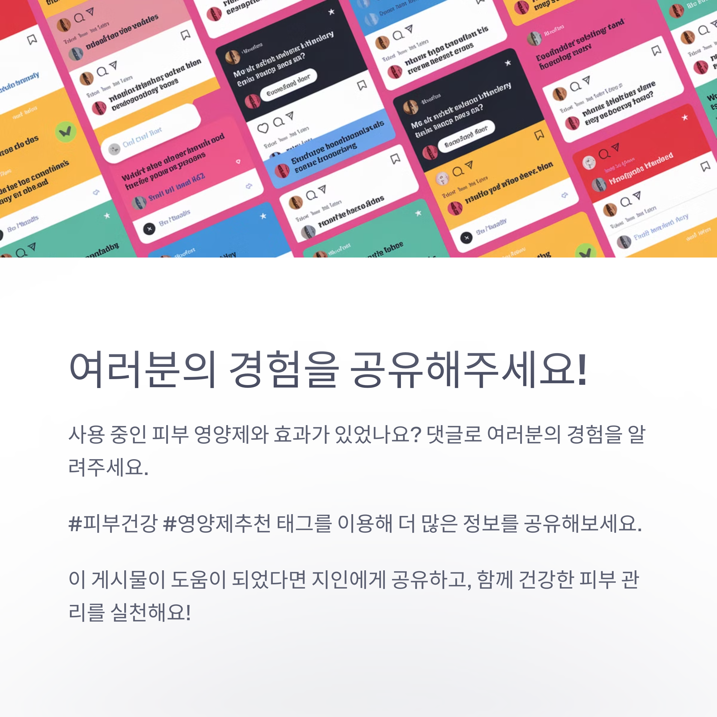 여러분이 사용해 본 피부 영양제에 대해 이야기해 주세요. 어떤 영양제가 효과적이었나요? 댓글로 남겨주세요!