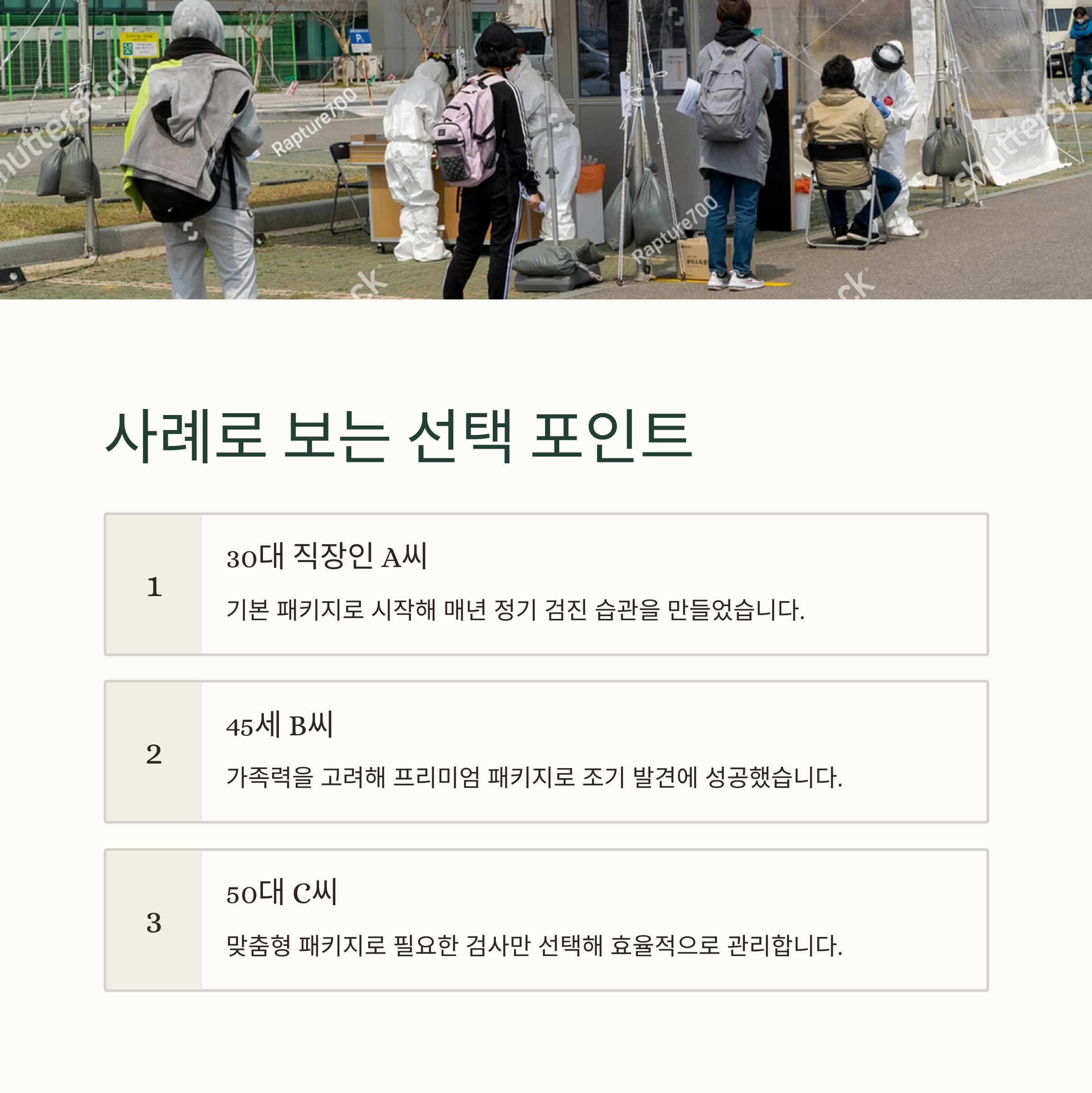 실제 사례를 통해 각자의 상황에 맞는 건강 검진 패키지 선택 방법을 알아보겠습니다.