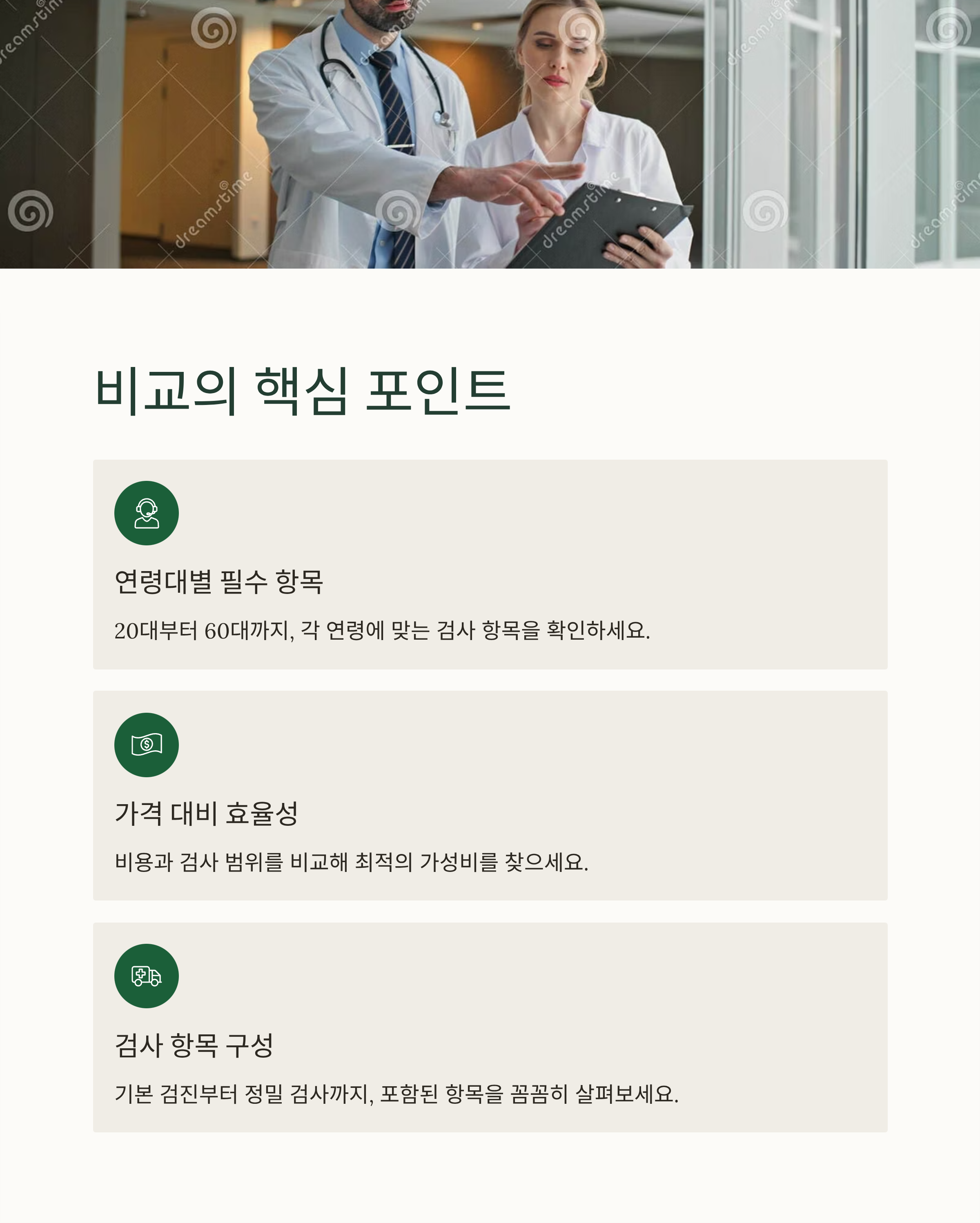 다양한 건강 검진 패키지 중에서 최적의 선택을 하려면 다음 핵심 포인트를 기준으로 비교해야 합니다.