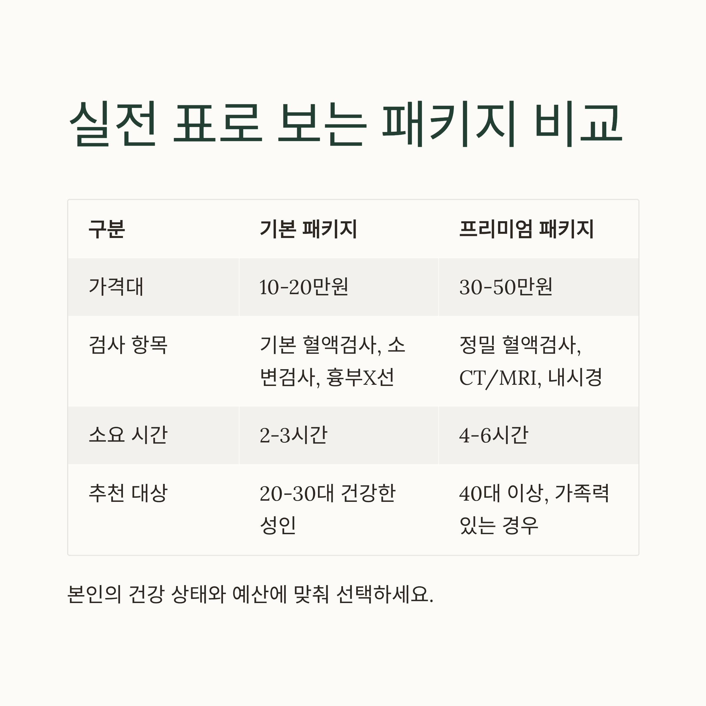 💡 팁: 국가 건강검진 대상자인 경우, 공단에서 제공하는 기본 검진을 먼저 받고 부족한 부분을 채우는 방식으로 패키지를 선택하면 비용을 절감할 수 있습니다.