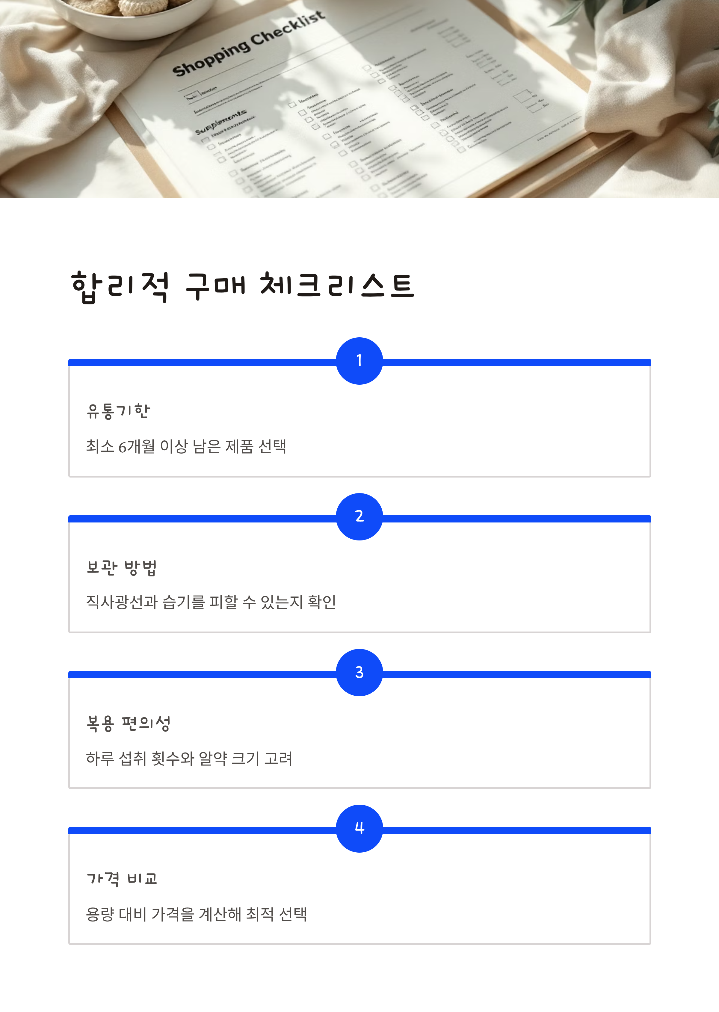 성분 비교를 마쳤다면, 이제 구매 단계에서 고려해야 할 실질적인 포인트들을 체크리스트로 정리했습니다. 이 체크리스트를 통해 더욱 합리적인 구매를 할 수 있습니다.