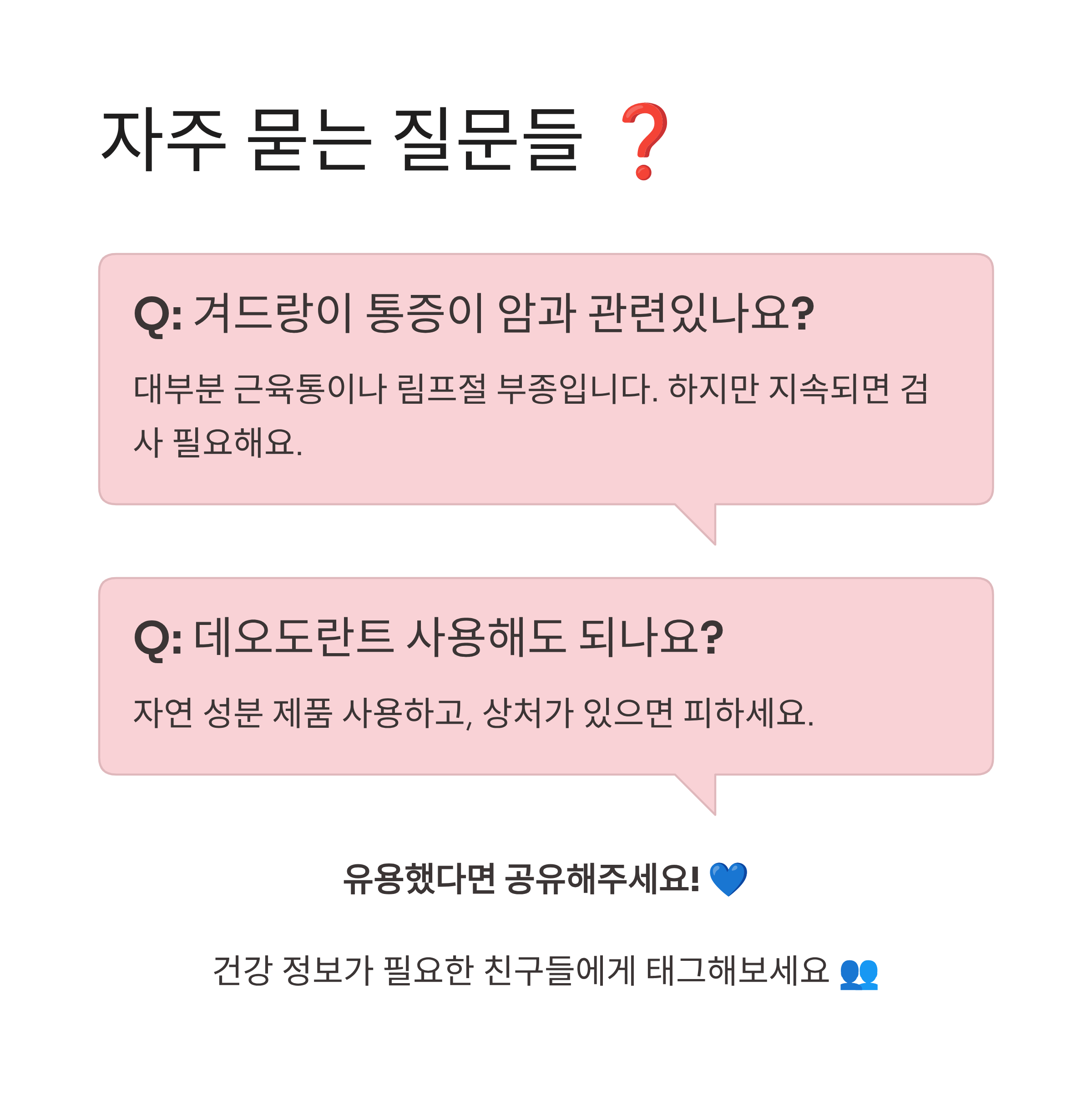 겨드랑이 통증은 원인에 따라 관리법이 달라지므로 정확한 진단이 핵심입니다. 🌟