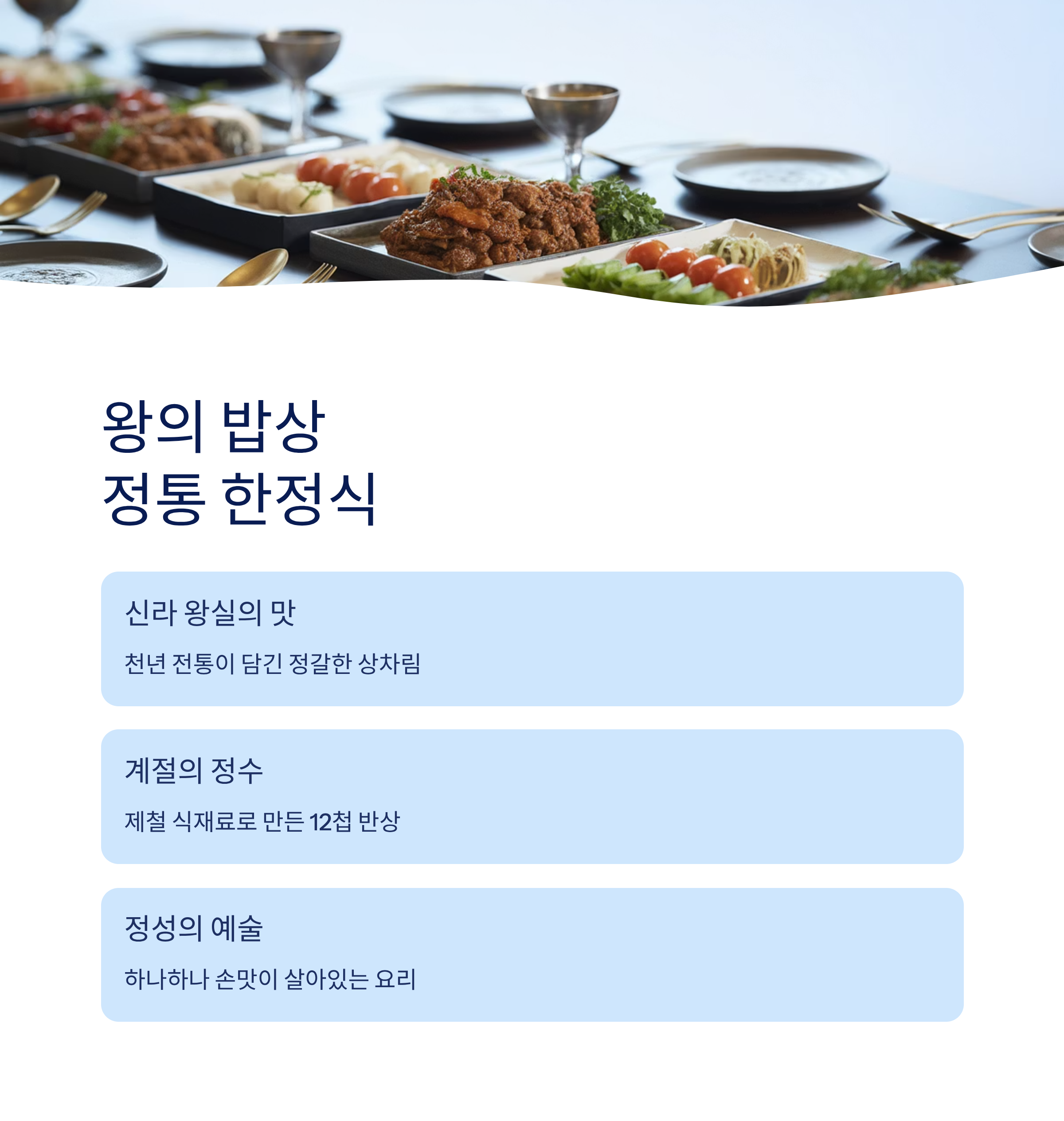 경주에 왔다면 신라 시대 왕이 받았을 법한 정갈한 '한정식'은 꼭 경험해봐야 해요. 경주 한정식은 화려한 한옥에서 정성 가득한 상차림을 받는 것이 특징이에요. 특히 부모님을 모시고 가거나 격식 있는 식사 자리에 최고예요.