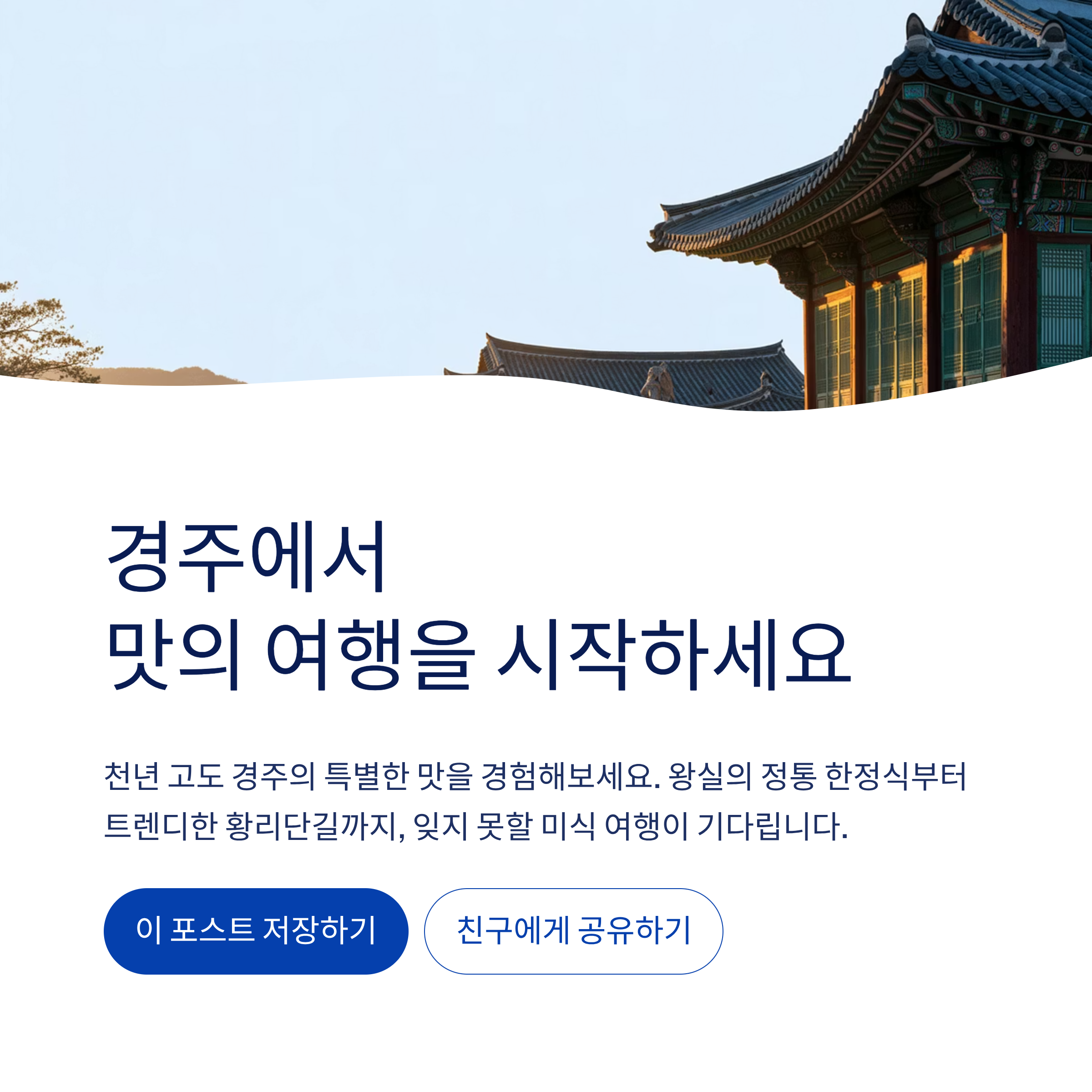 경주는 단순한 역사 도시가 아니라, 맛과 멋이 공존하는 미식의 성지예요. 특히 천년고도의 분위기를 느끼며 즐기는 음식은 경주 여행을 더욱 특별하게 만들죠.