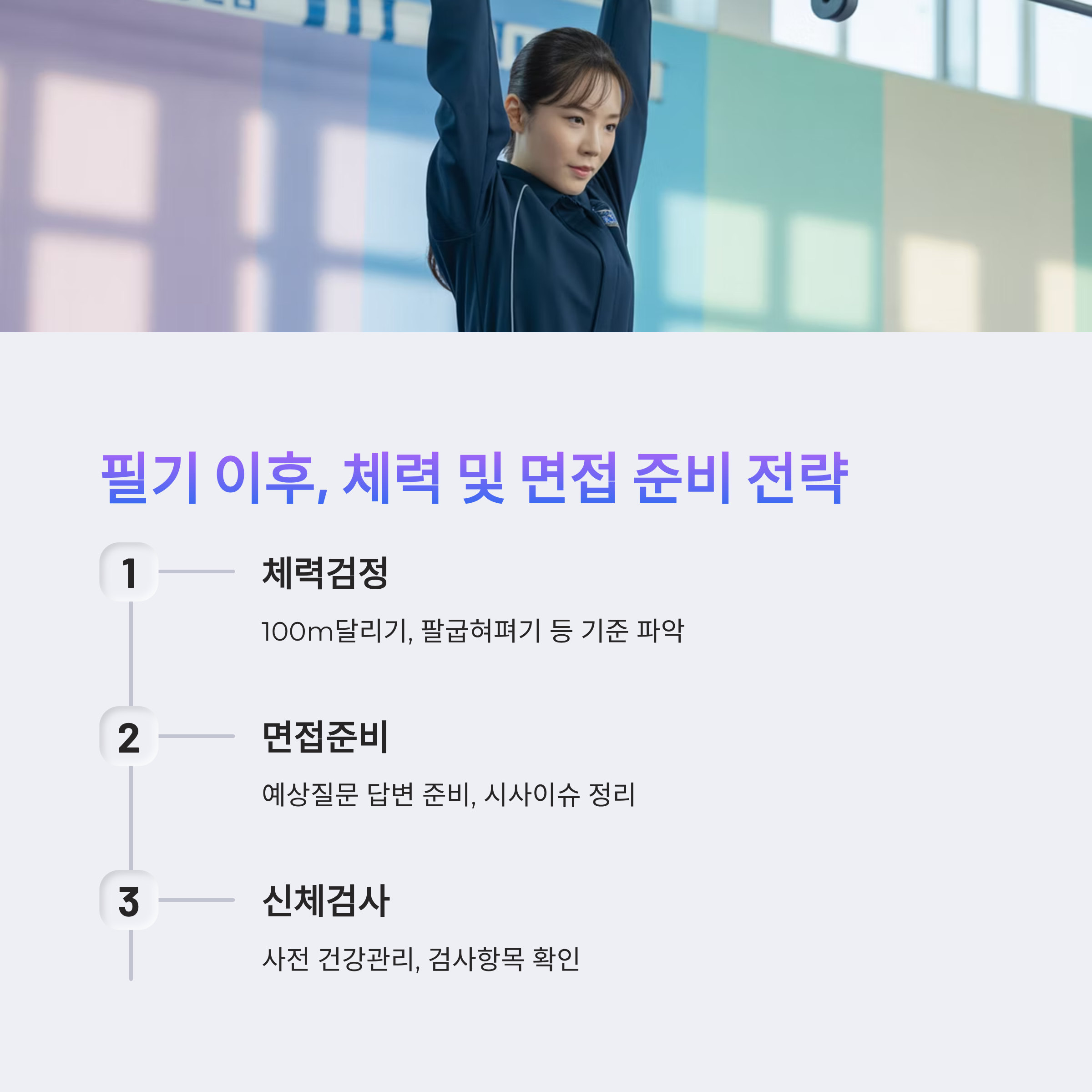 체력과 면접, 미리미리 준비해야 최종 합격합니다. 💪