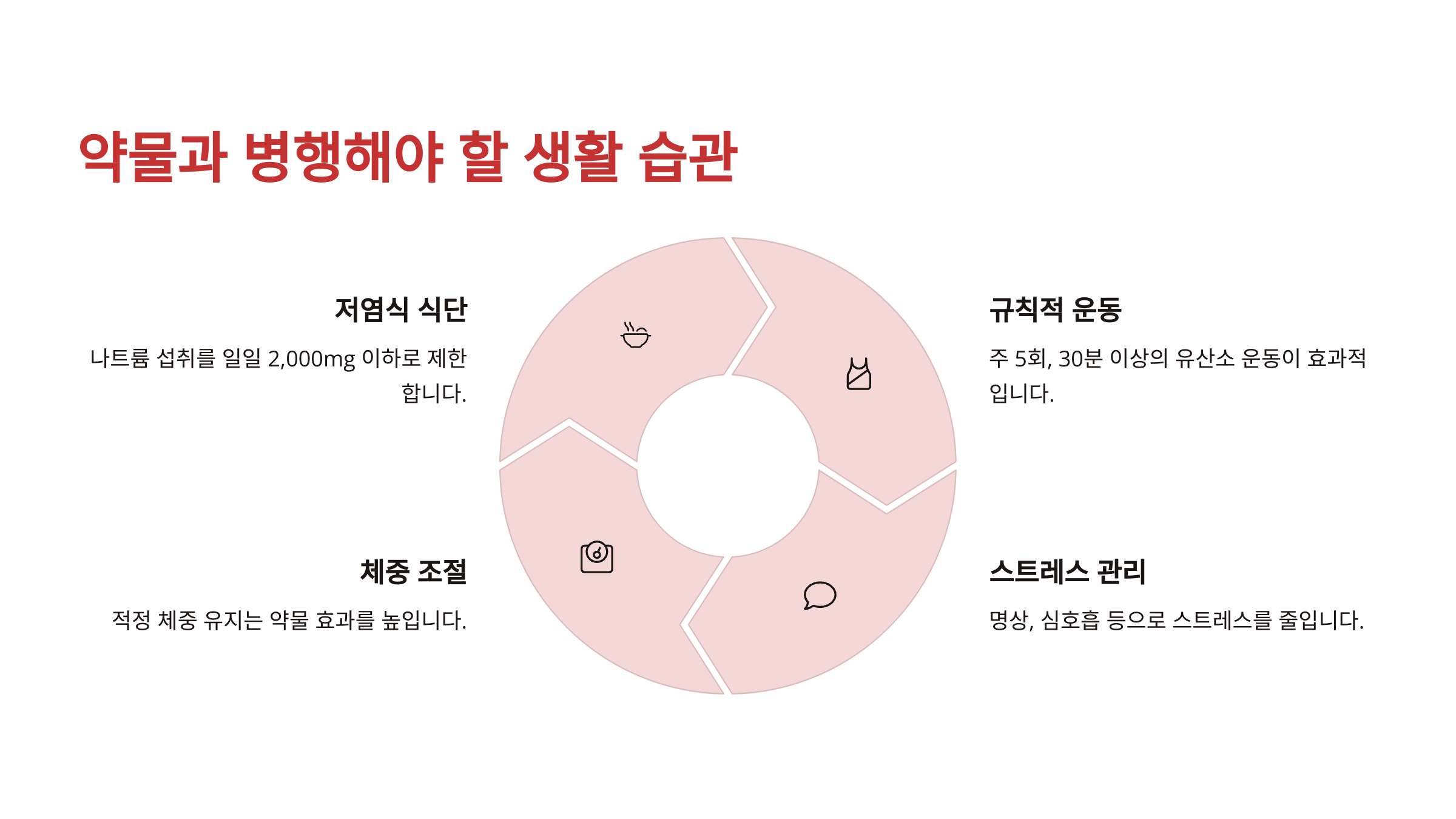고혈압이 있는 사람은 단순히 약만 먹는 것이 아니라 생활 습관도 함께 관리해야 해요. 체중 조절, 식단 개선, 운동, 금연 등이 중요하고, 이 모든 요소가 함께 작용해야 약물의 효과도 더 잘 나타난답니다.