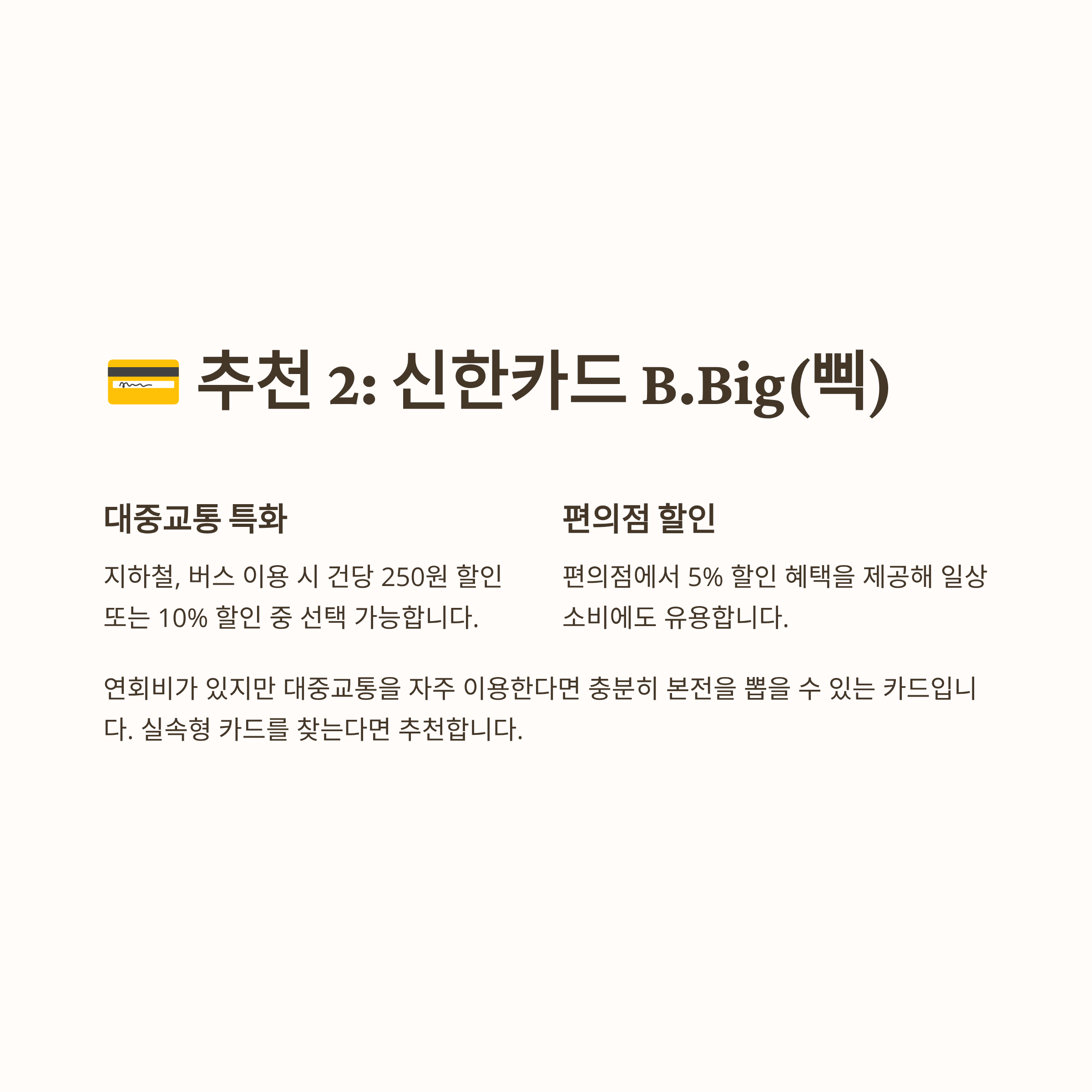 💳 추천 2: 신한카드 B.Big(삑) 또는 비슷한 카드 (가상 예시 포함)