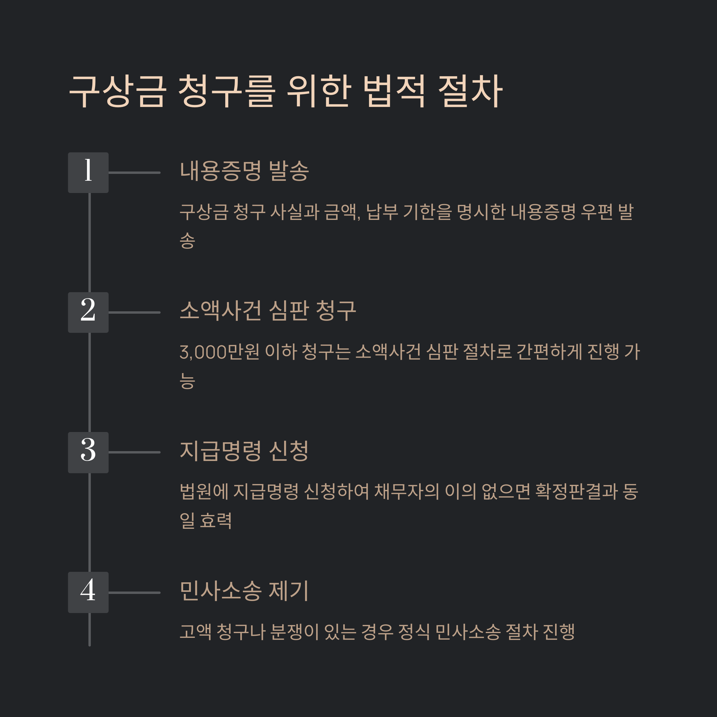 | 2단계: 내용증명 | 구상금 청구 내용증명 발송 | 우체국 발행 내용증명 원본 보관 |