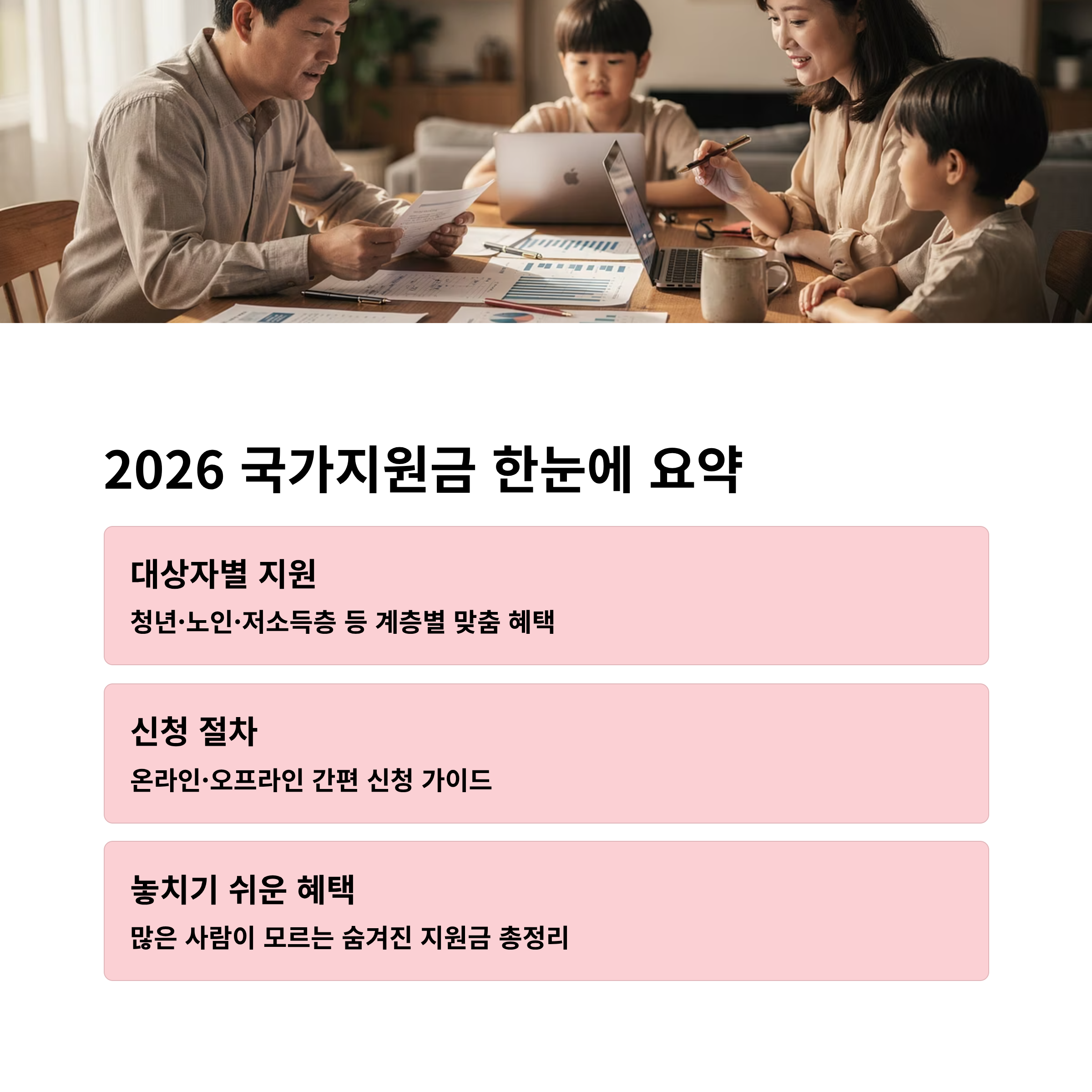 1. 2026 국가지원금 한눈에 요약 2. 대상자별 꼭 챙겨야 할 지원금 3. 신청 방법 및 절차 4. 자주 놓치는 혜택 체크리스트 5. 자주 묻는 질문1. 2026 국가지원금 한눈에 요약