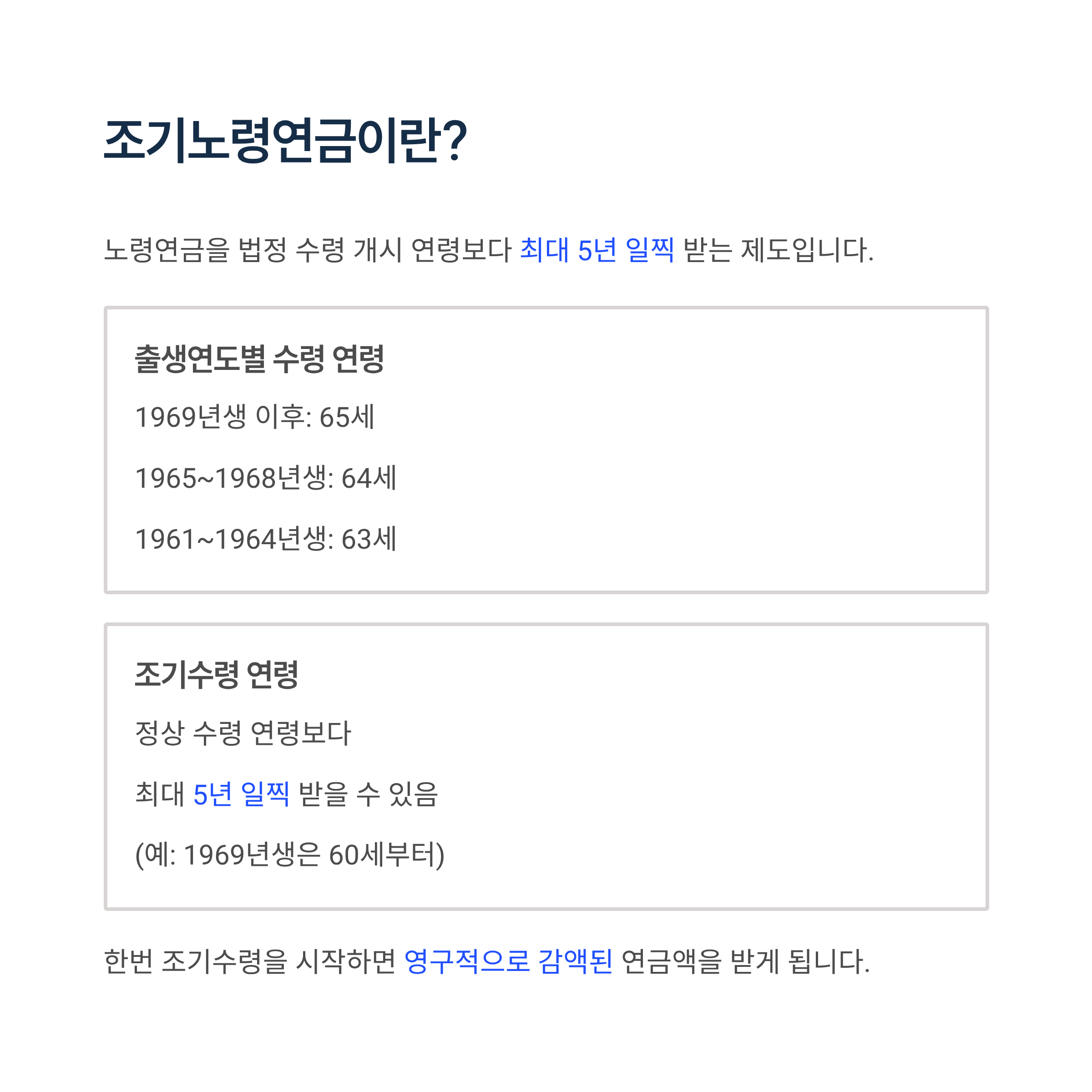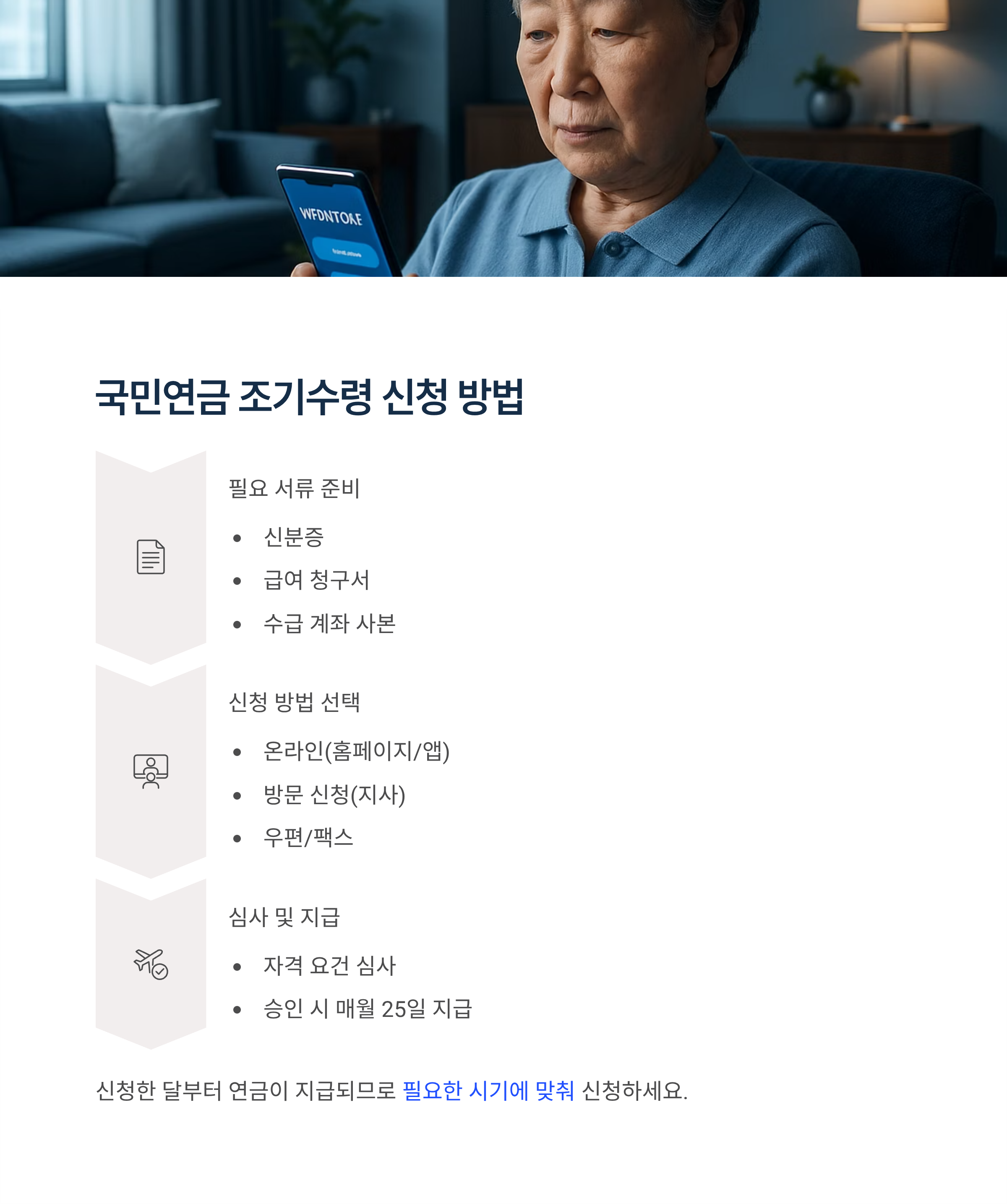 조기수령은 당장의 필요를 채우지만, 장기적 영향이 큽니다. 📋