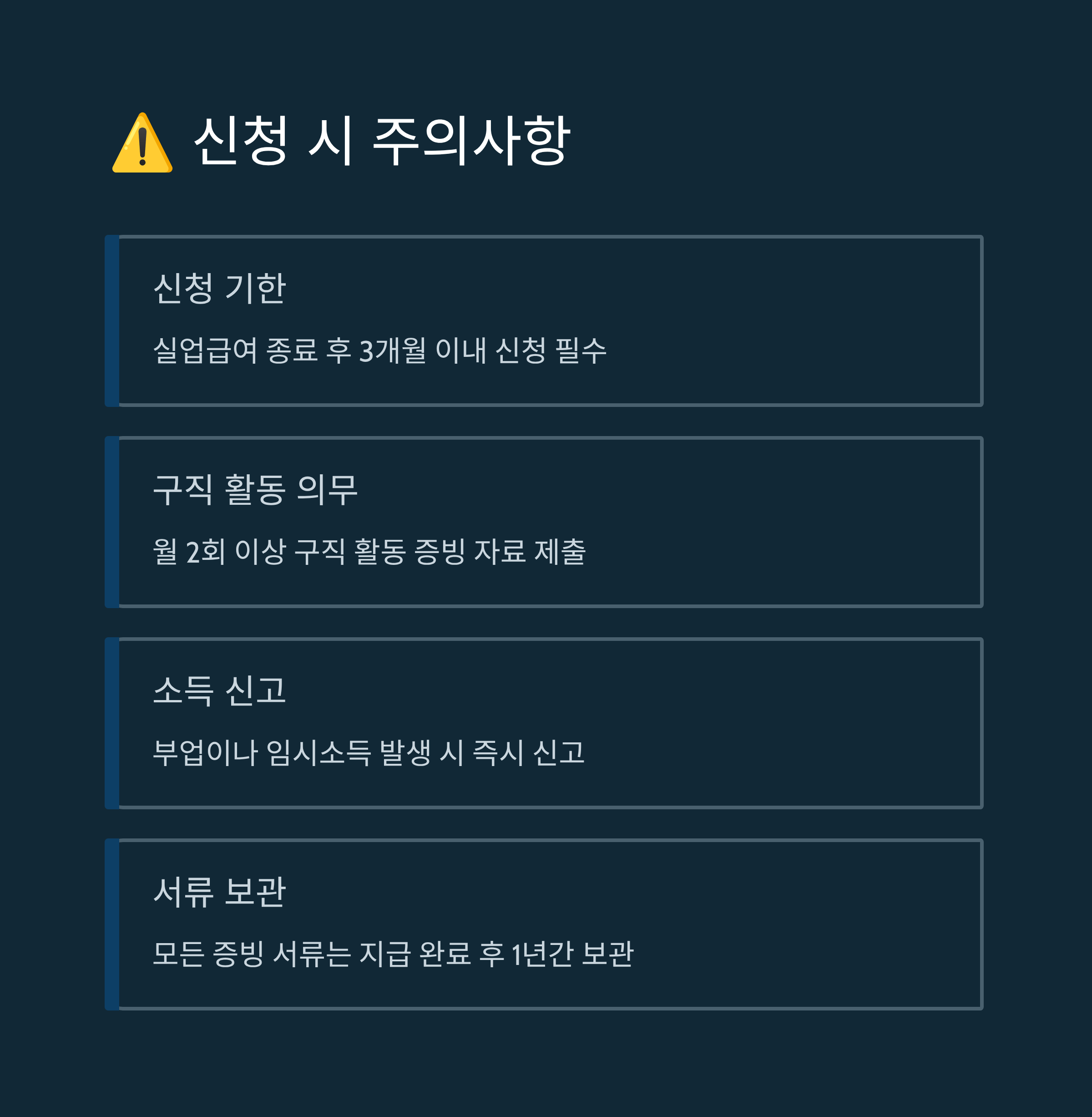 구직촉진수당은 취업 준비생에게 큰 도움이 되는 제도이지만, 혜택을 놓치지 않고 원활하게 받기 위해서는 몇 가지 주의사항을 반드시 숙지해야 합니다.