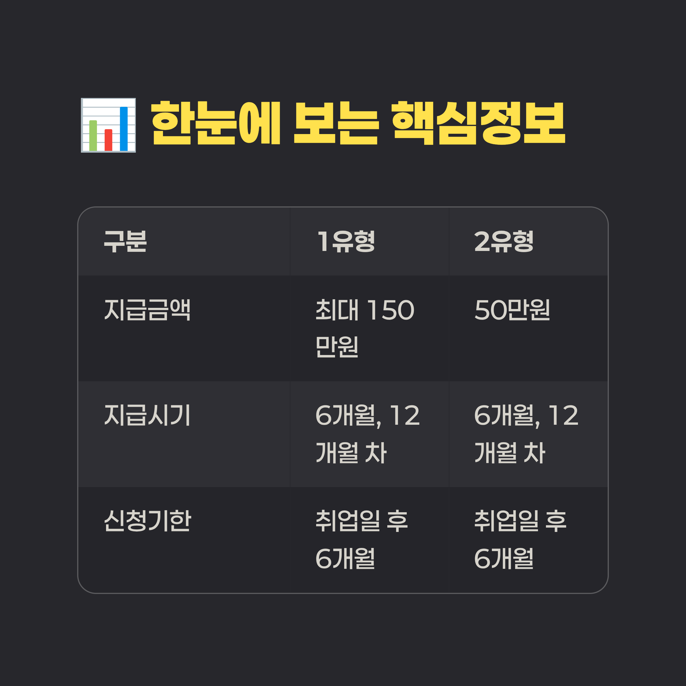 국민취업지원제도 취업성공수당의 핵심 정보들을 한눈에 비교하고 요약해 보세요.