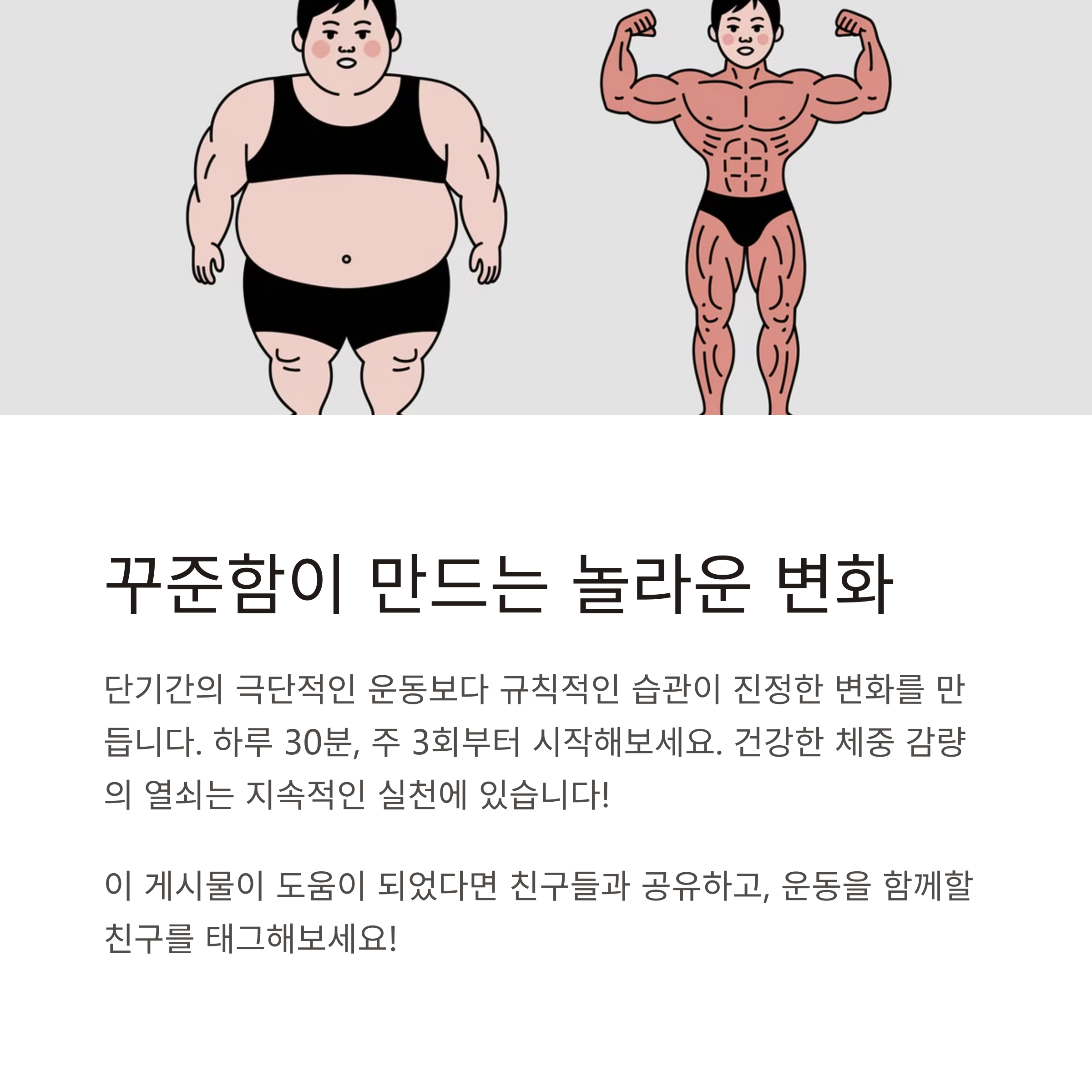 여러분은 근력 운동을 어떻게 실천하고 계신가요? 다이어트 경험을 공유해 주시면 더 많은 분들께 도움이 될 수 있습니다. 댓글로 여러분의 생각을 남겨주세요!
