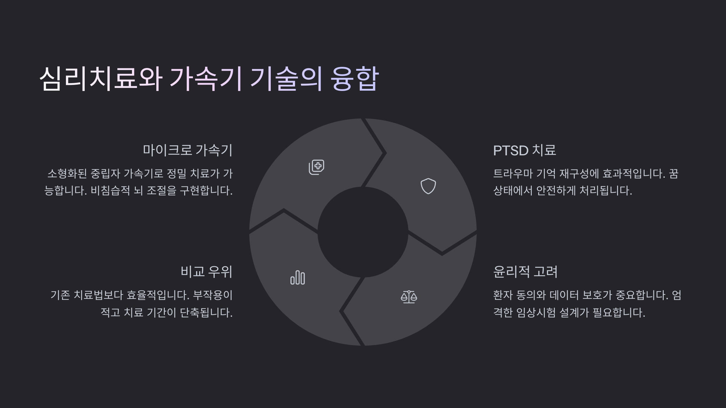 이 기술은 특히 군 전역자, 재난 경험자, 외상 후 스트레스 환자에게 효과적으로 적용될 수 있어요. 수면 중 감정을 조절함으로써 수면의 질도 개선되고, 전반적인 치료 경과도 더 좋아지는 경향을 보이고 있답니다.