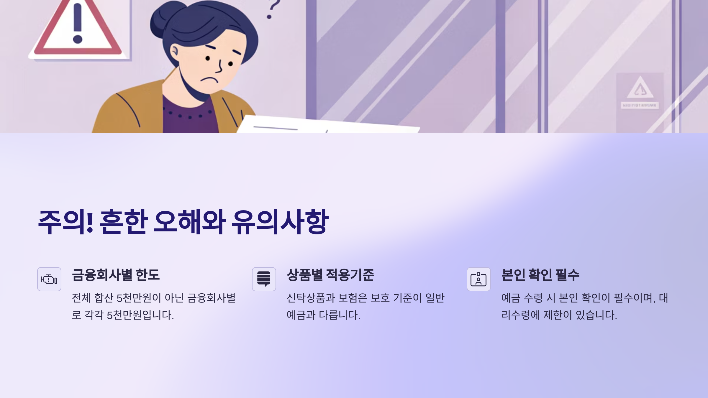 - 오해 1: "모든 금융기관, 모든 상품이 보호된다?"