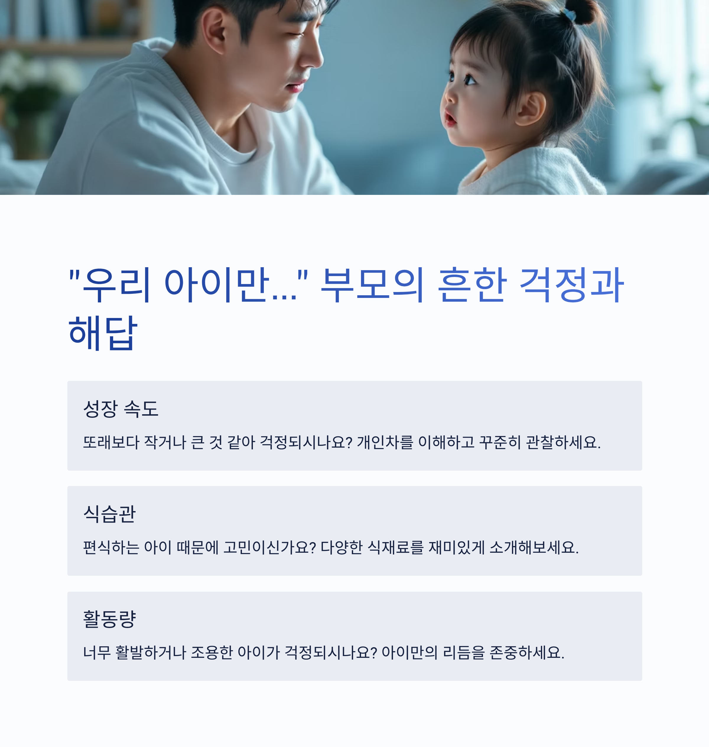 아이의 건강한 성장은 '완벽한 식단'이 아닌 '사랑이 담긴 꾸준한 노력'에서 비롯됩니다. 가족이 함께 즐겁게 실천하는 것이 가장 큰 힘이 됩니다.