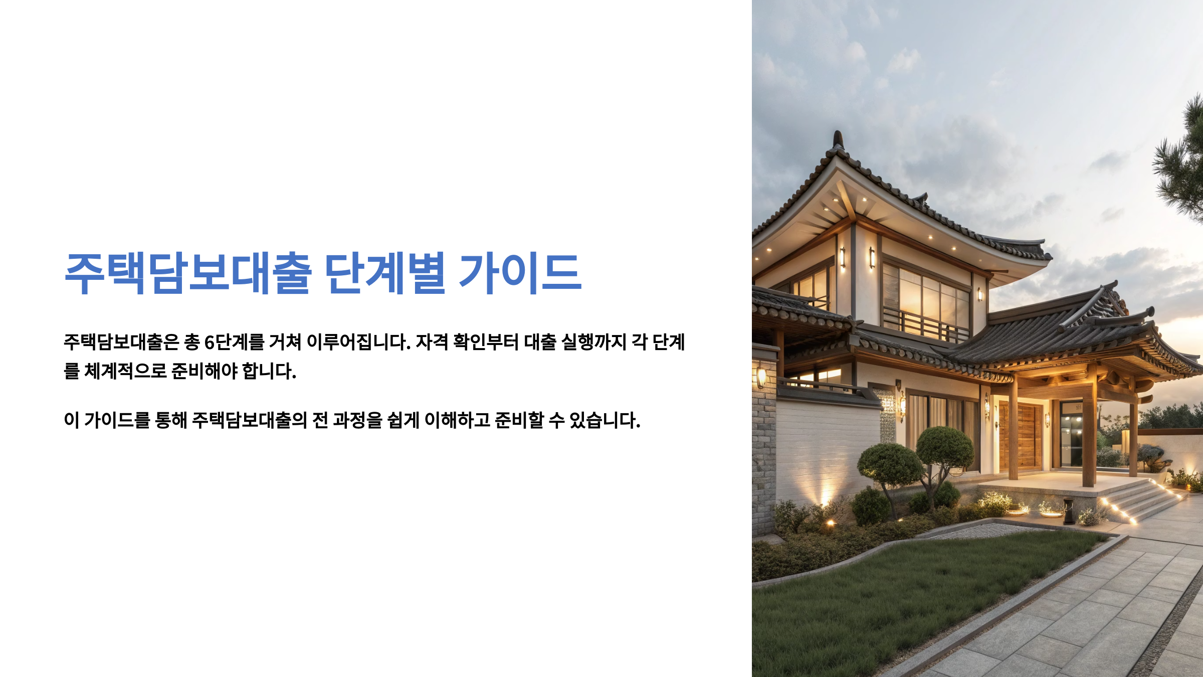 핵심 요약: 주택담보대출은 크게 ① 자격 및 한도 확인 → ② 상품 비교 및 선택 → ③ 서류 준비 → ④ 대출 신청 → ⑤ 심사 및 승인 → ⑥ 대출 실행 단계를 거칩니다. 각 단계별로 꼼꼼하게 준비하는 것이 중요합니다.