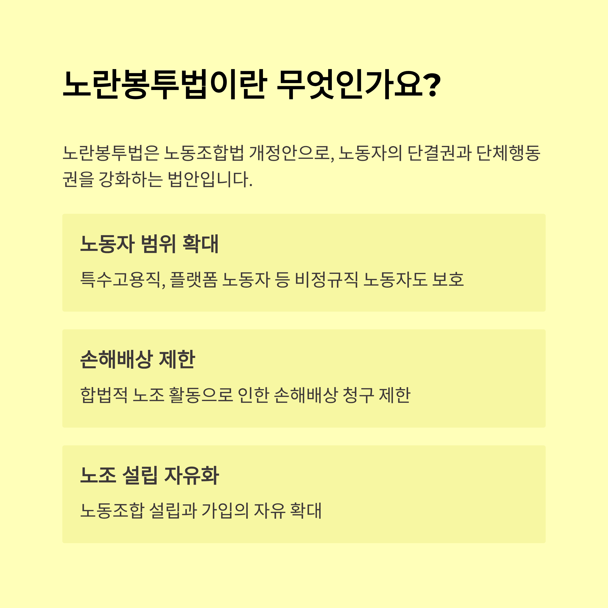 노란봉투법은 노동권 사각지대에 놓인 이들을 위한 중요한 전환점이 될 수 있습니다. 🤝