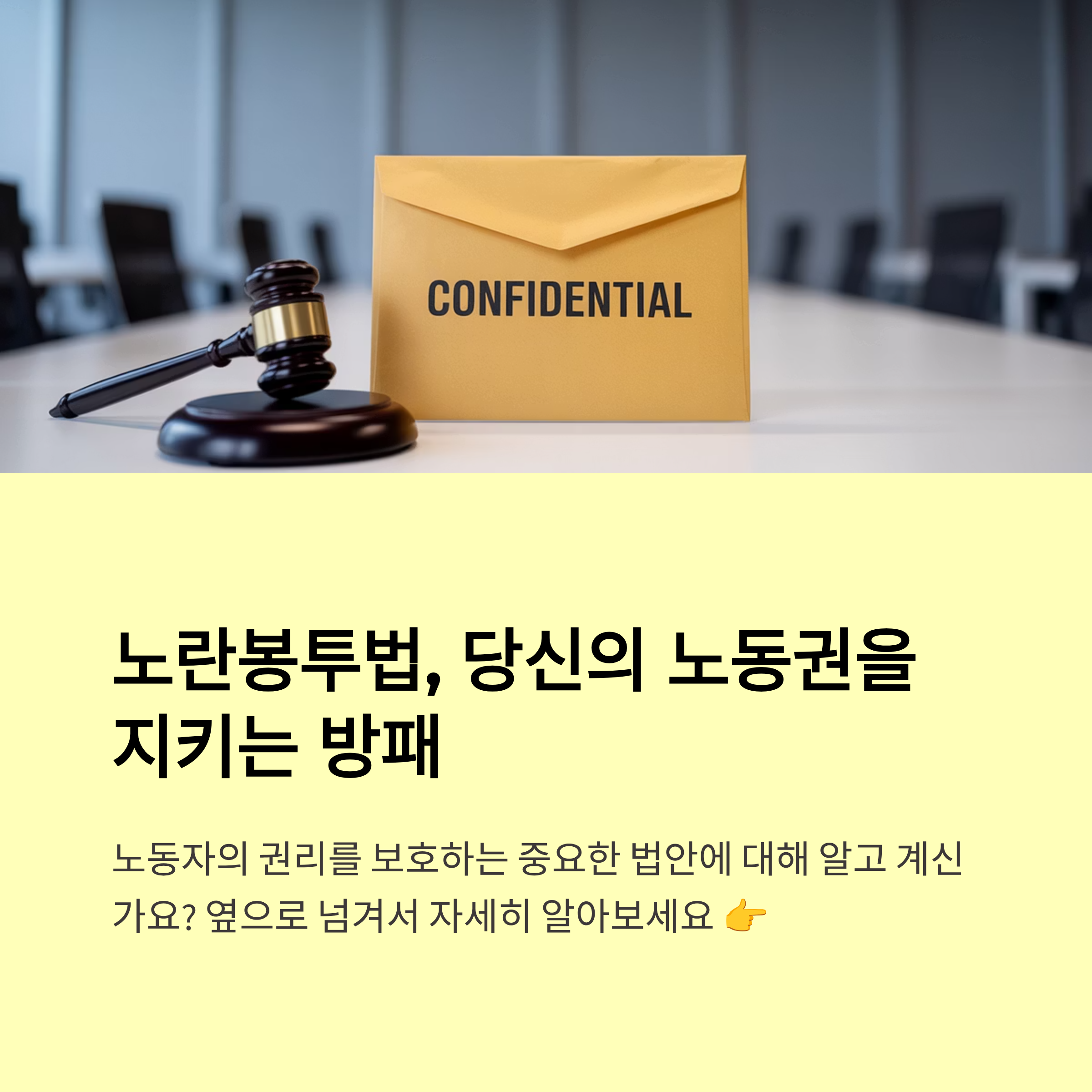 노란봉투법은 노동자의 정당한 권리 행사를 보호하려는 목적을 가집니다. 📋