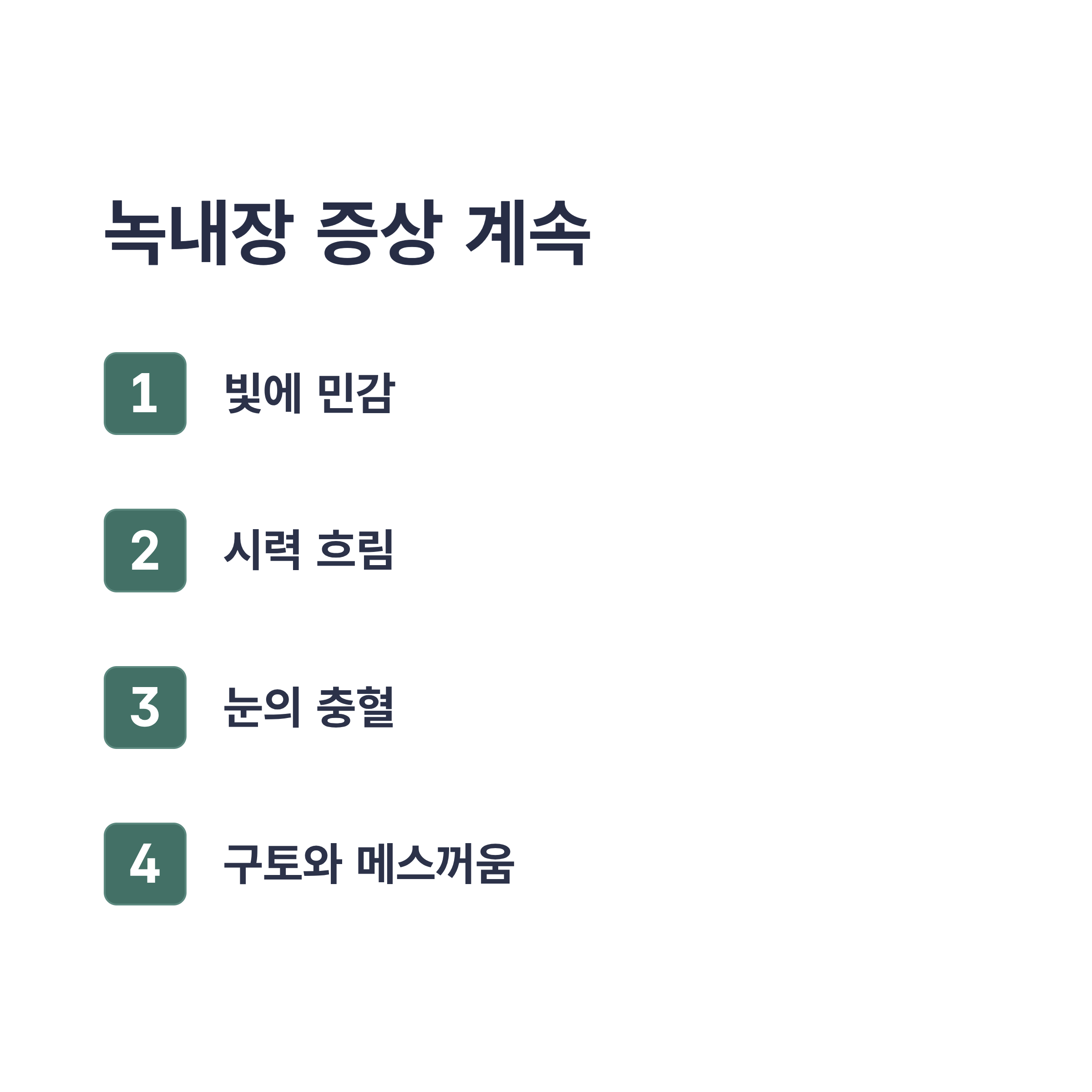 이러한 증상들은 녹내장이 어느 정도 진행되었음을 의미하므로, 하나라도 해당된다면 지체 없이 안과 전문의의 진료를 받아야 합니다. 👁️🗨️