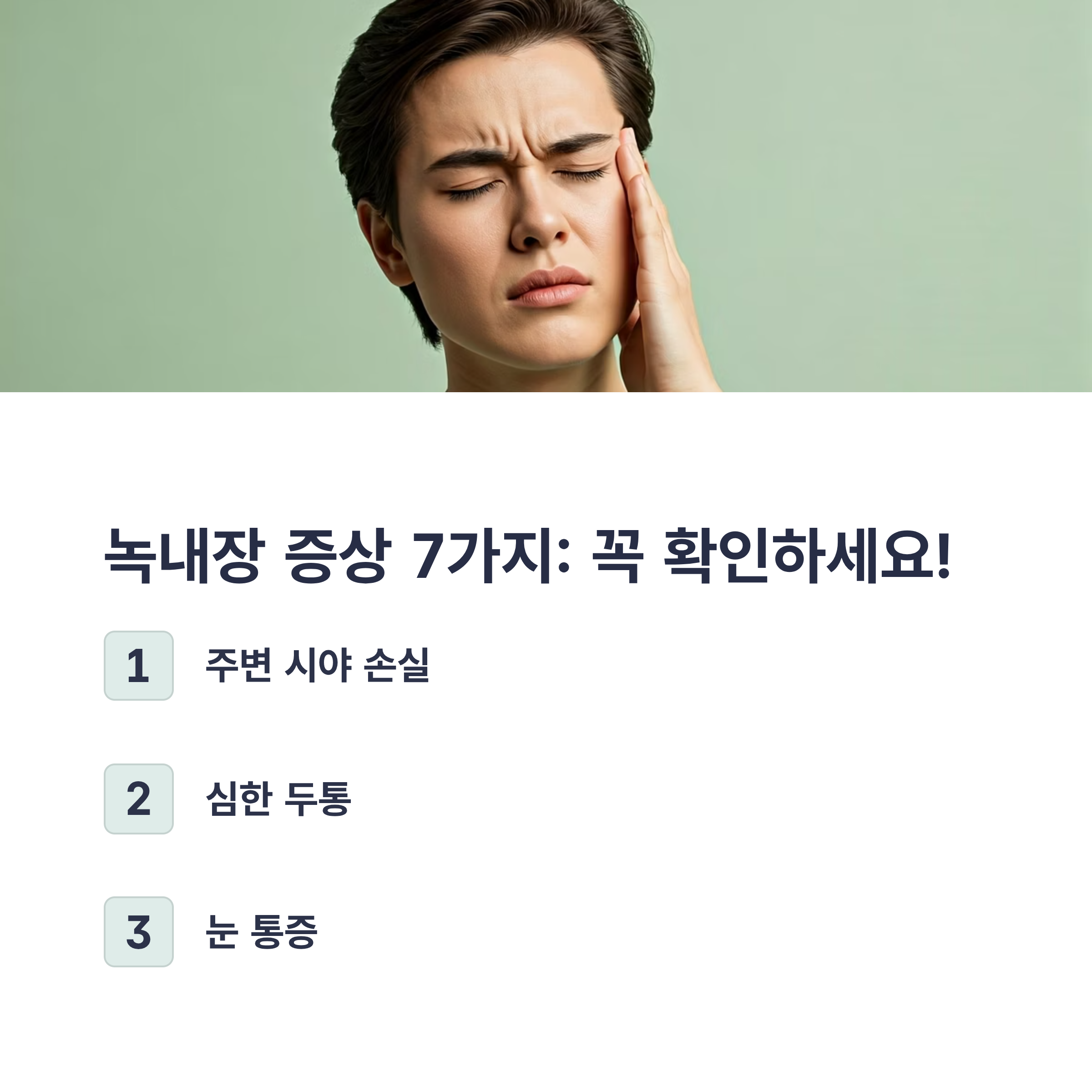 자, 그럼 다음은 녹내장이 있을 때 나타나는 ‘주요 증상 7가지’에 대해 자세히 알아볼 차례예요. 📝