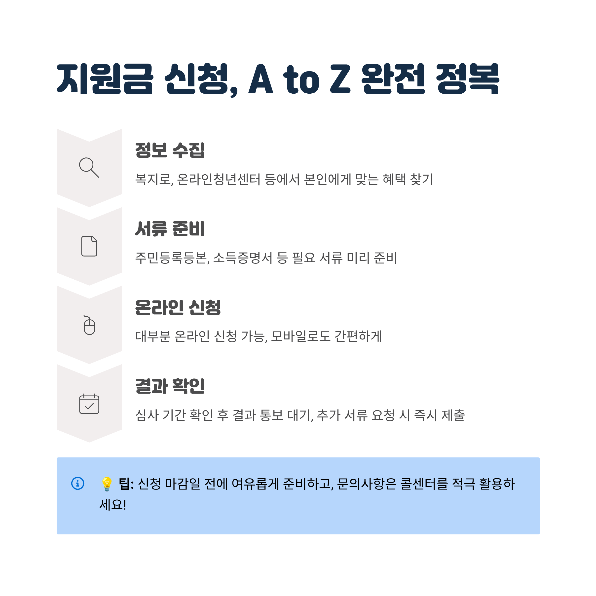 정보를 아는 것만큼 중요한 것이 바로 '실천'입니다. 복잡해 보이지만, 몇 가지 핵심 단계만 기억하면 누구나 신청할 수 있어요.