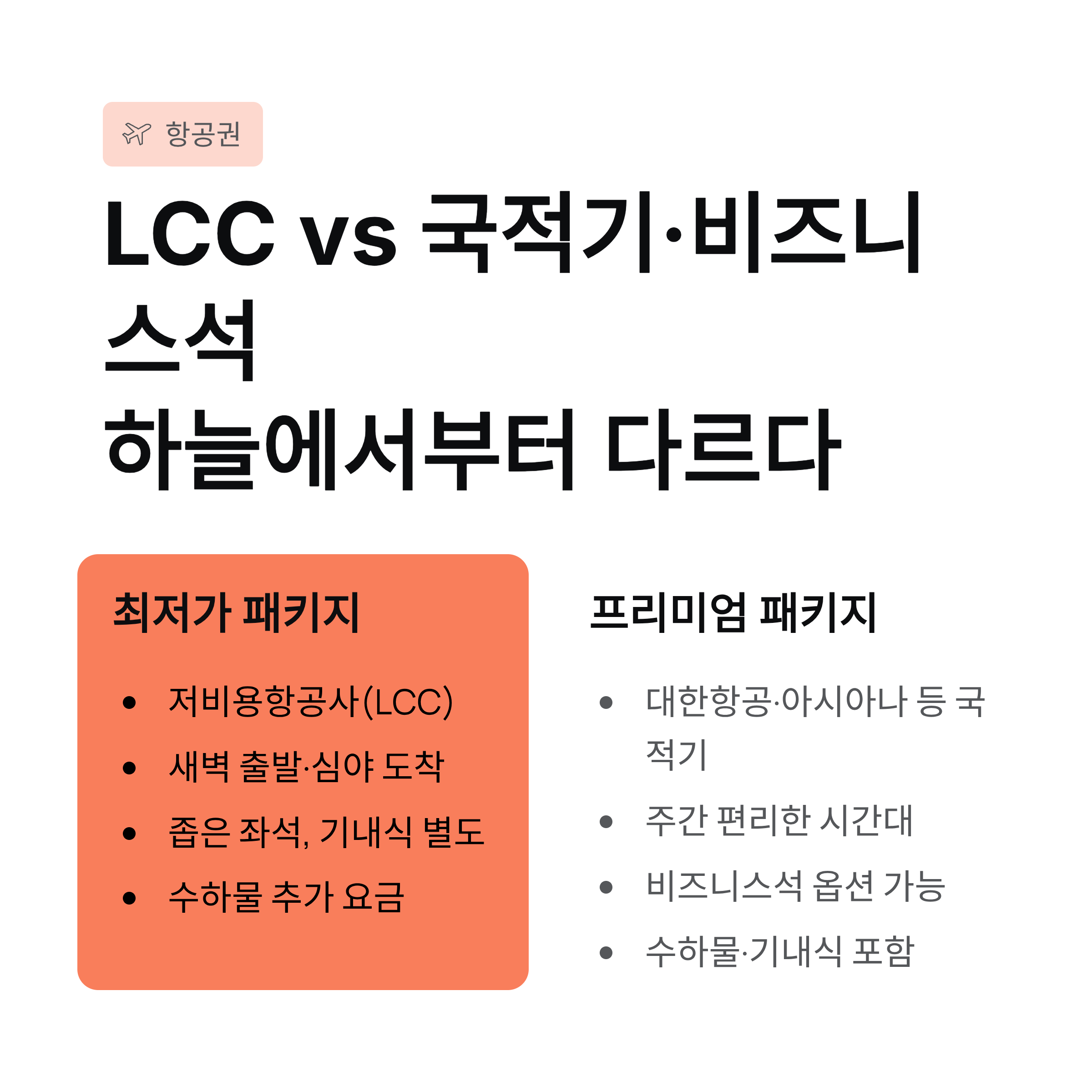 ✈️ 항공권 차이: LCC vs 국적기·비즈니스석