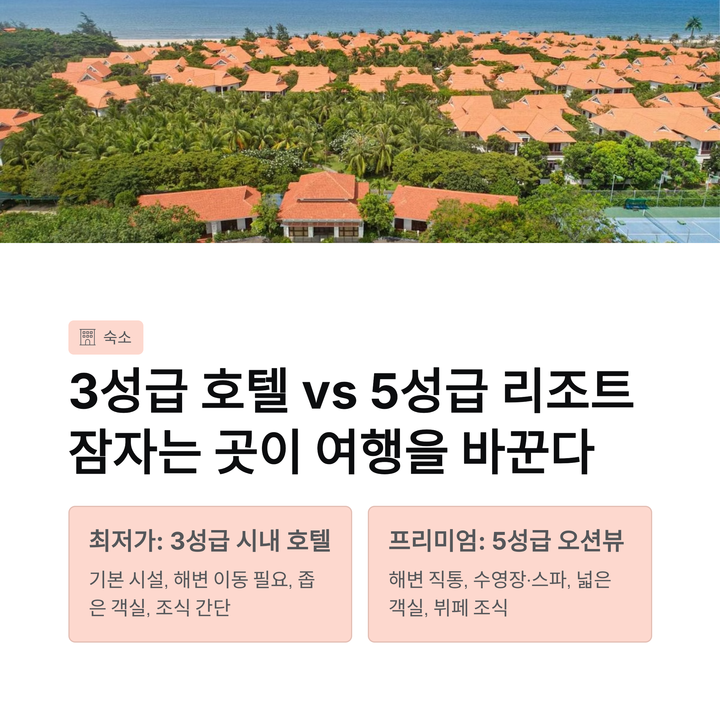 🏨 숙소 차이: 3성급 시내 호텔 vs 5성급 오션뷰 리조트
