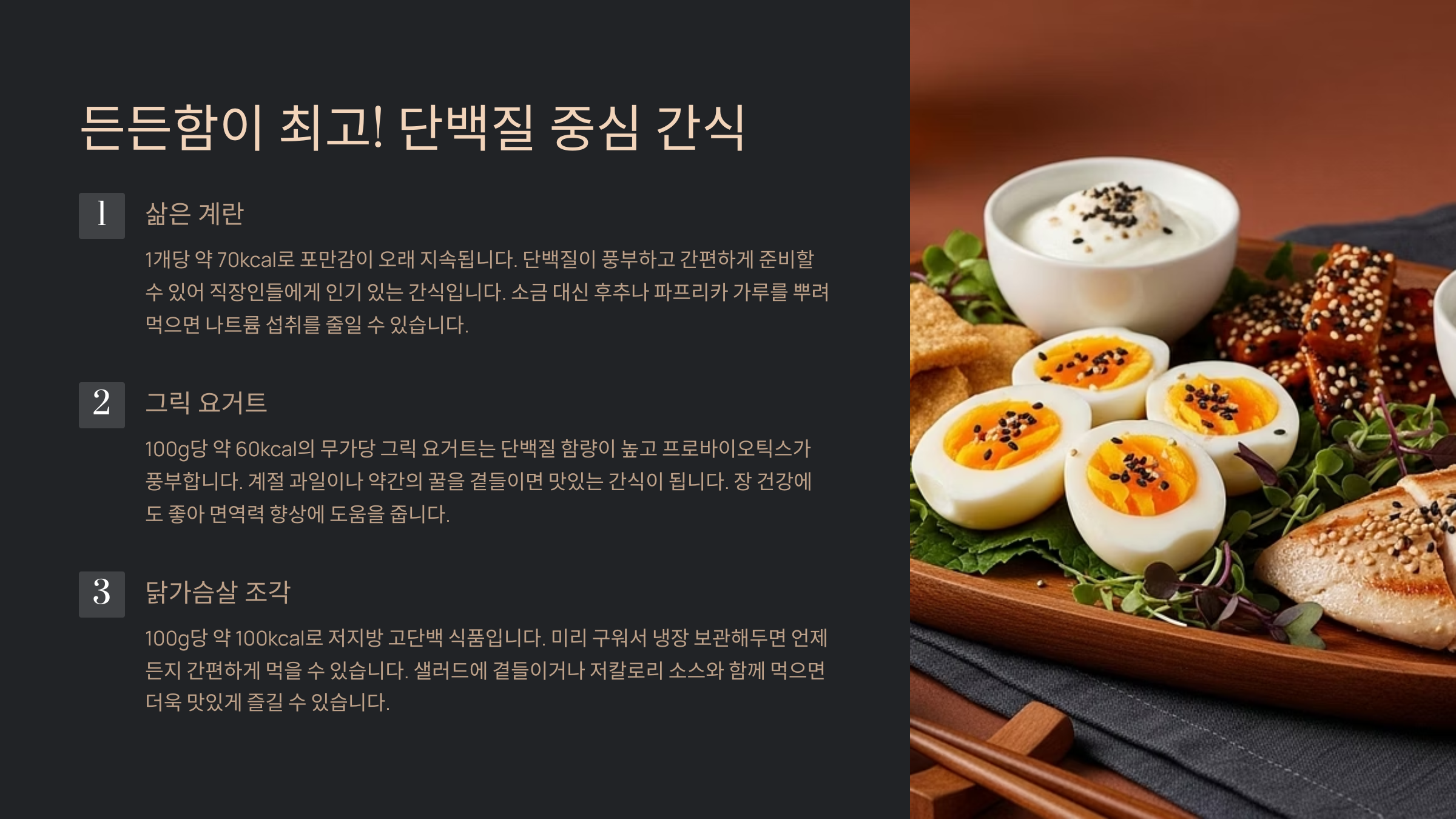 든든함이 최고! 단백질 중심 간식 🥚🥛