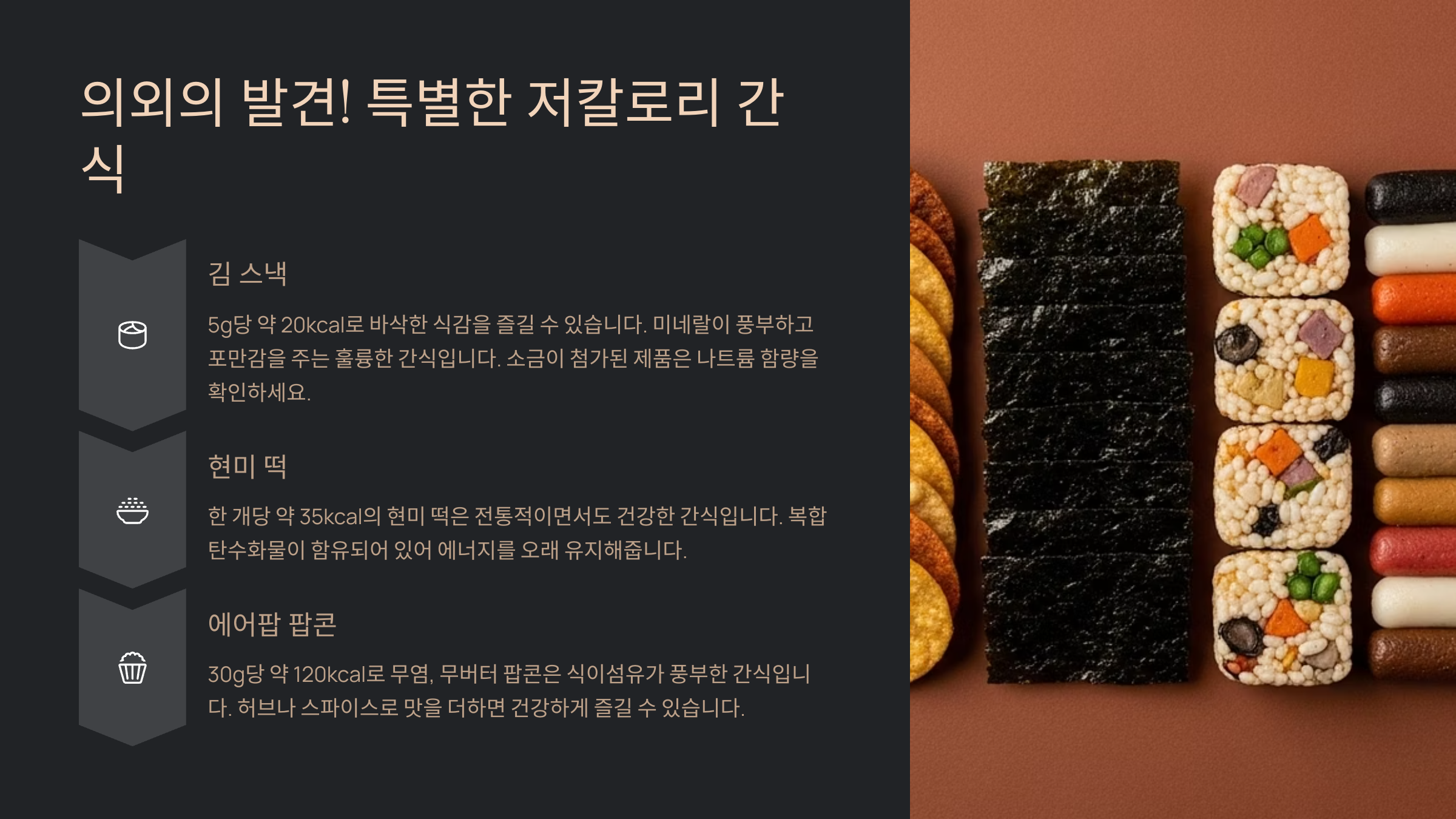 단순히 칼로리만 낮은 간식을 찾는 것을 넘어, 영양가까지 고려한 간식을 선택하는 것이 중요합니다. 건강한 저칼로리 간식은 다이어트를 방해하는 요소가 아니라, 오히려 목표 달성을 돕는 든든한 지원군이 되어줄 거예요.