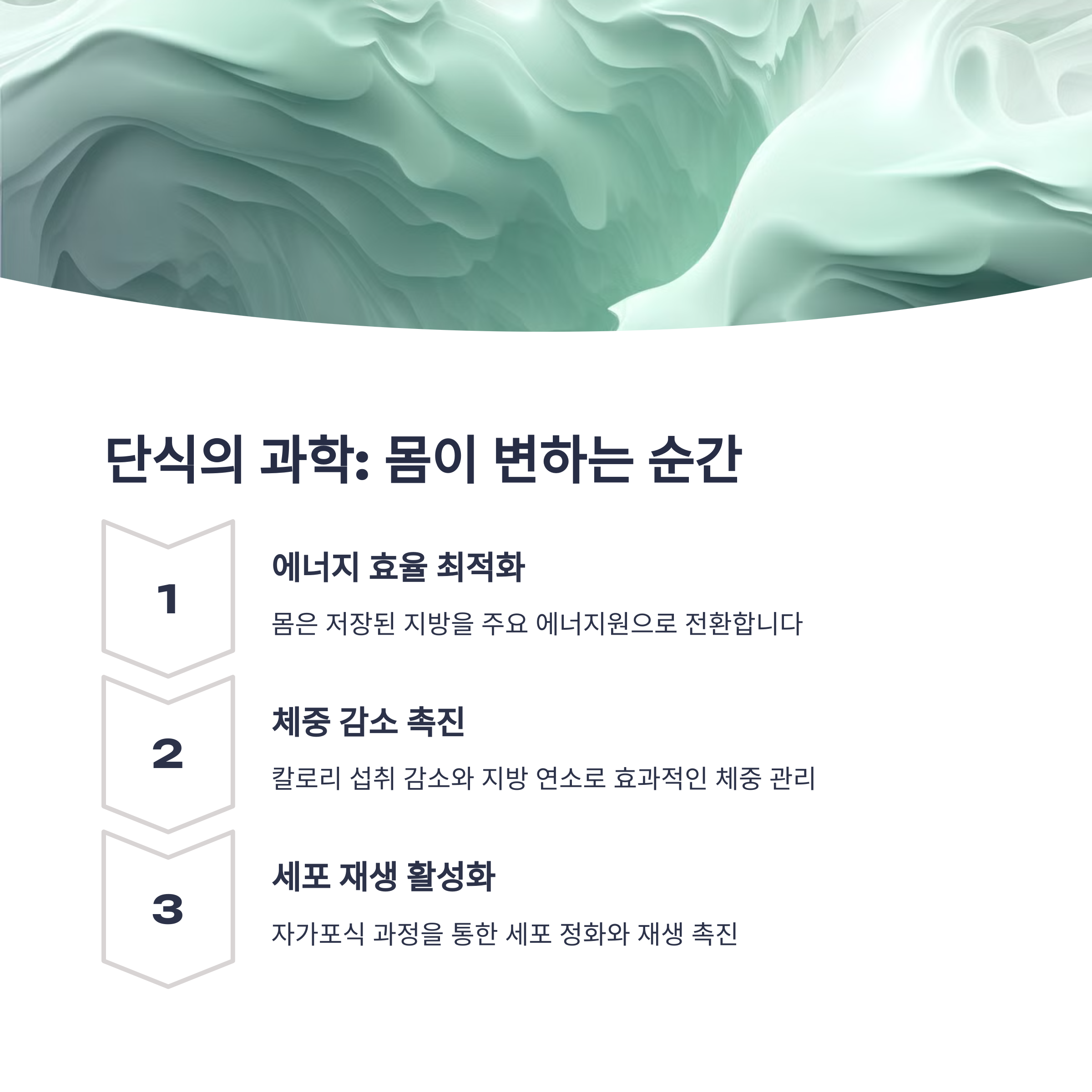 단식의 원리와 신진대사와의 관계를 이해하면, 체내의 변화 과정을 제대로 알고 이를 효과적으로 활용할 수 있습니다. 단식이 어떻게 우리의 몸에서 에너지 소모를 최적화하고, 세포 재생을 촉진하는지에 대한 궁금증을 풀어보겠습니다.