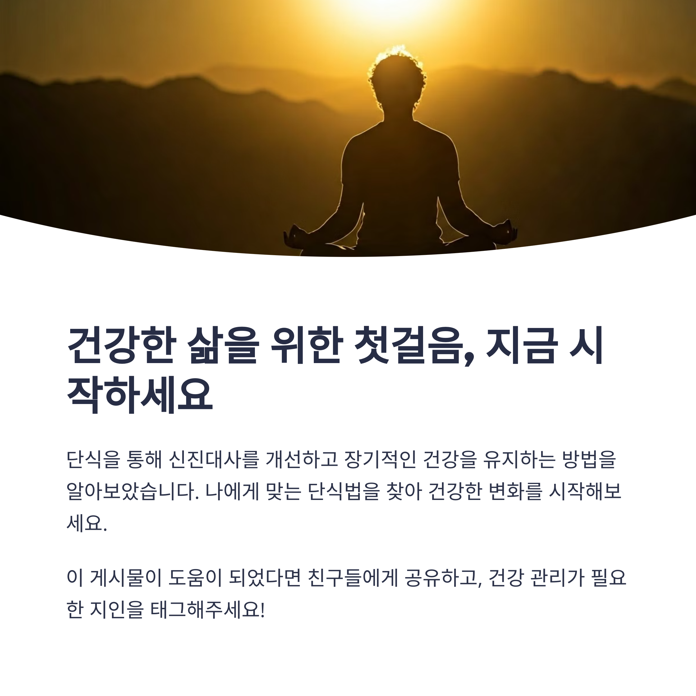 단식은 단순한 체중 감량 방법을 넘어, 신진대사를 개선하고 장기적인 건강을 지키는 데 중요한 역할을 합니다. 신체 회복, 세포 재생, 그리고 대사 개선을 통해 우리의 몸은 더 건강하고 효율적으로 기능할 수 있습니다. 단식의 이점을 올바르게 활용하면, 건강한 삶을 유지하는 데 큰 도움이 될 것입니다.
