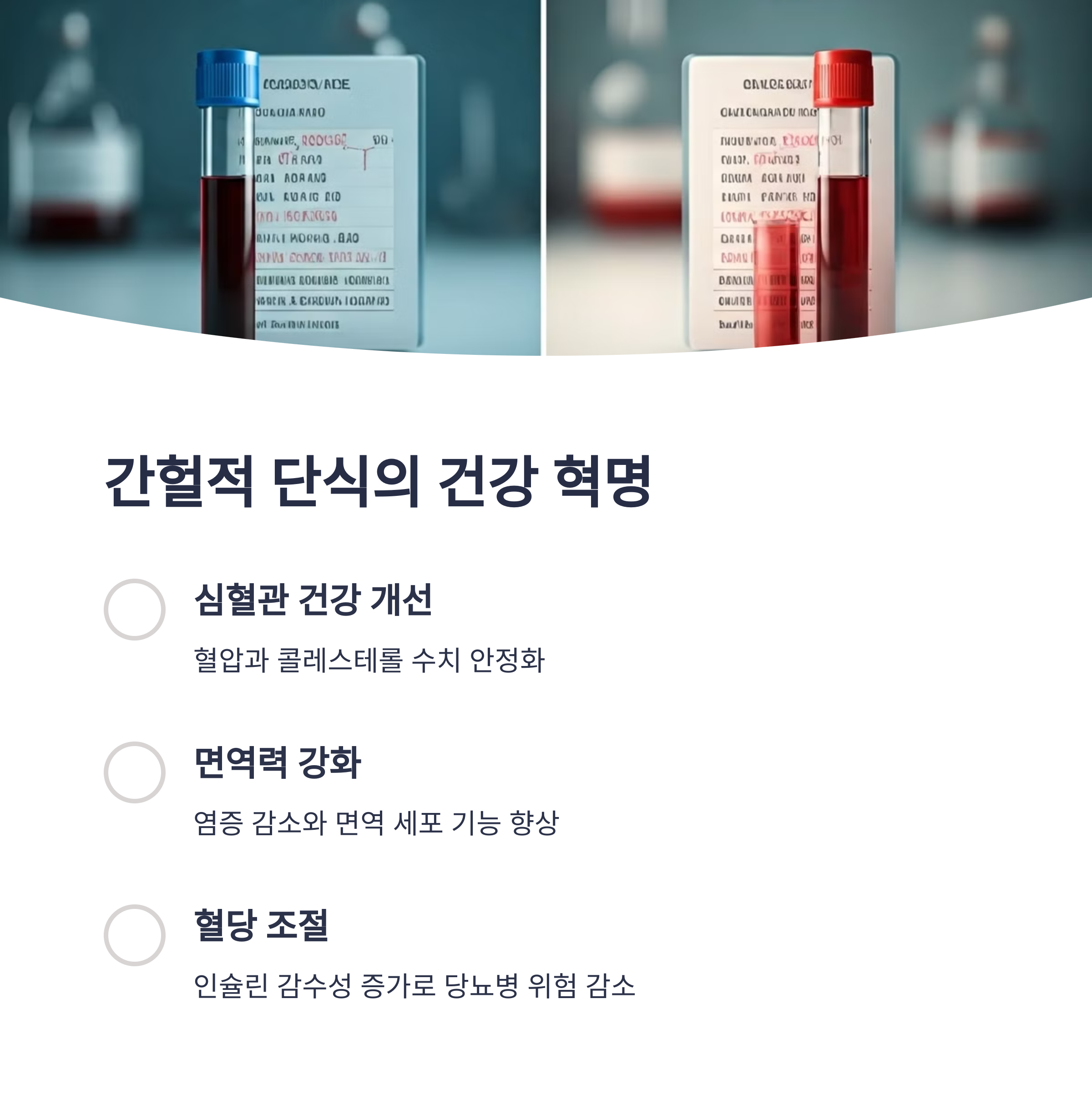 단식의 신진대사 개선 효과는 장기적인 건강 관리에도 긍정적인 영향을 미칩니다. 연구에 따르면, 간헐적 단식은 체중을 줄이고, 혈압과 콜레스테롤 수치를 안정화시키는 데 도움을 줄 수 있습니다. 또한, 체내 염증 수치를 낮추고, 심혈관 질환 위험을 줄이는 데에도 기여할 수 있습니다. 이러한 효과는 단기적인 변화에 그치지 않고, 지속적인 건강 관리에 중요한 기반을 마련합니다.