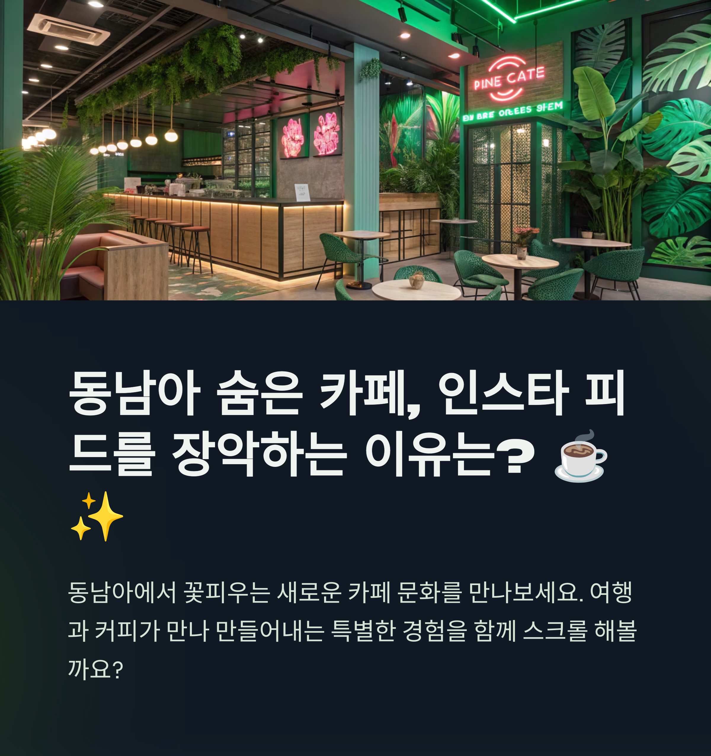 동남아시아는 저렴한 물가, 아름다운 자연, 그리고 이색적인 문화로 늘 여행객들의 발길을 끄는 곳입니다. 하지만 최근 몇 년 사이, 동남아의 도시들은 전 세계 힙스터와 디지털 노마드들이 사랑하는 '카페 성지'로 급부상하고 있습니다. 단순히 커피 한 잔을 마시는 것을 넘어, 그곳만의 독특한 분위기와 디자인, 그리고 로컬 감성을 경험할 수 있는 '힙한 카페'들이 넘쳐나죠.