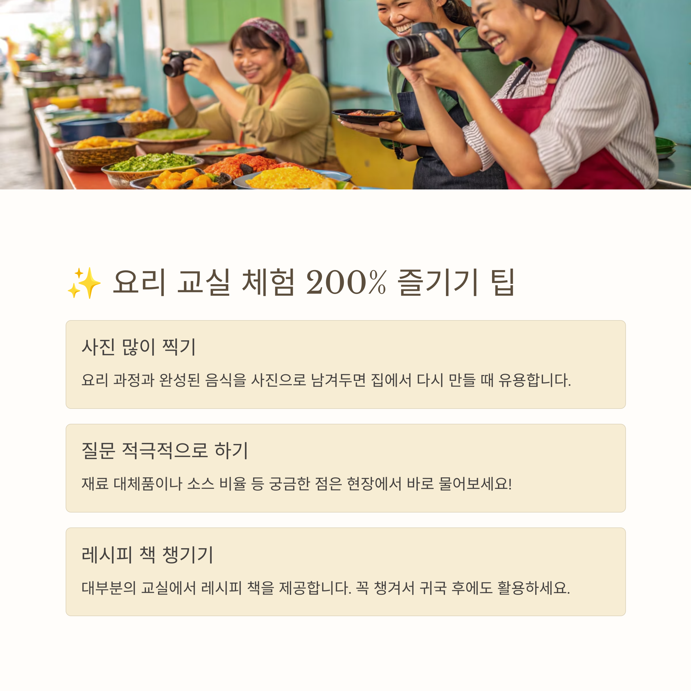 ✨ 요리 교실 즐기기 꿀팁