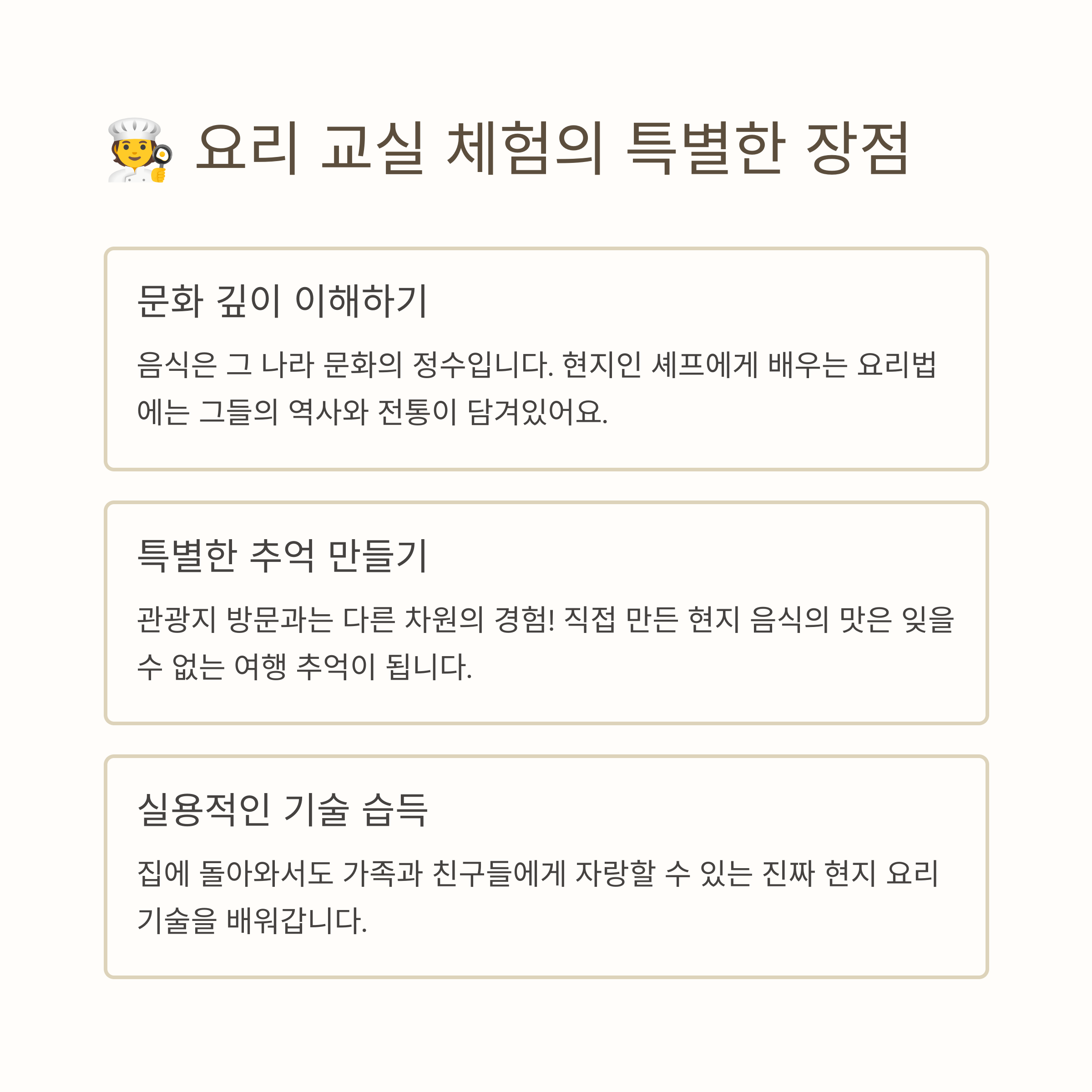 🧑🍳 요리 교실 체험의 특별한 장점