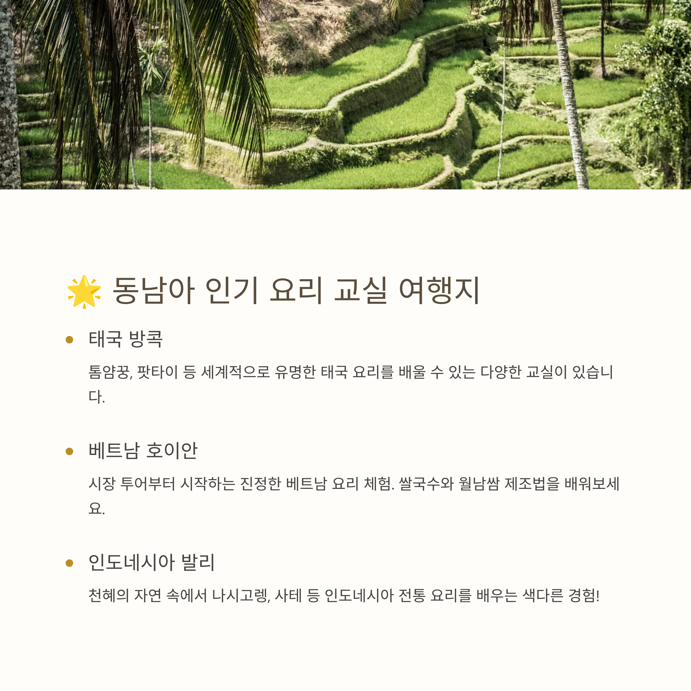🌟 동남아 인기 요리 교실 여행지 추천