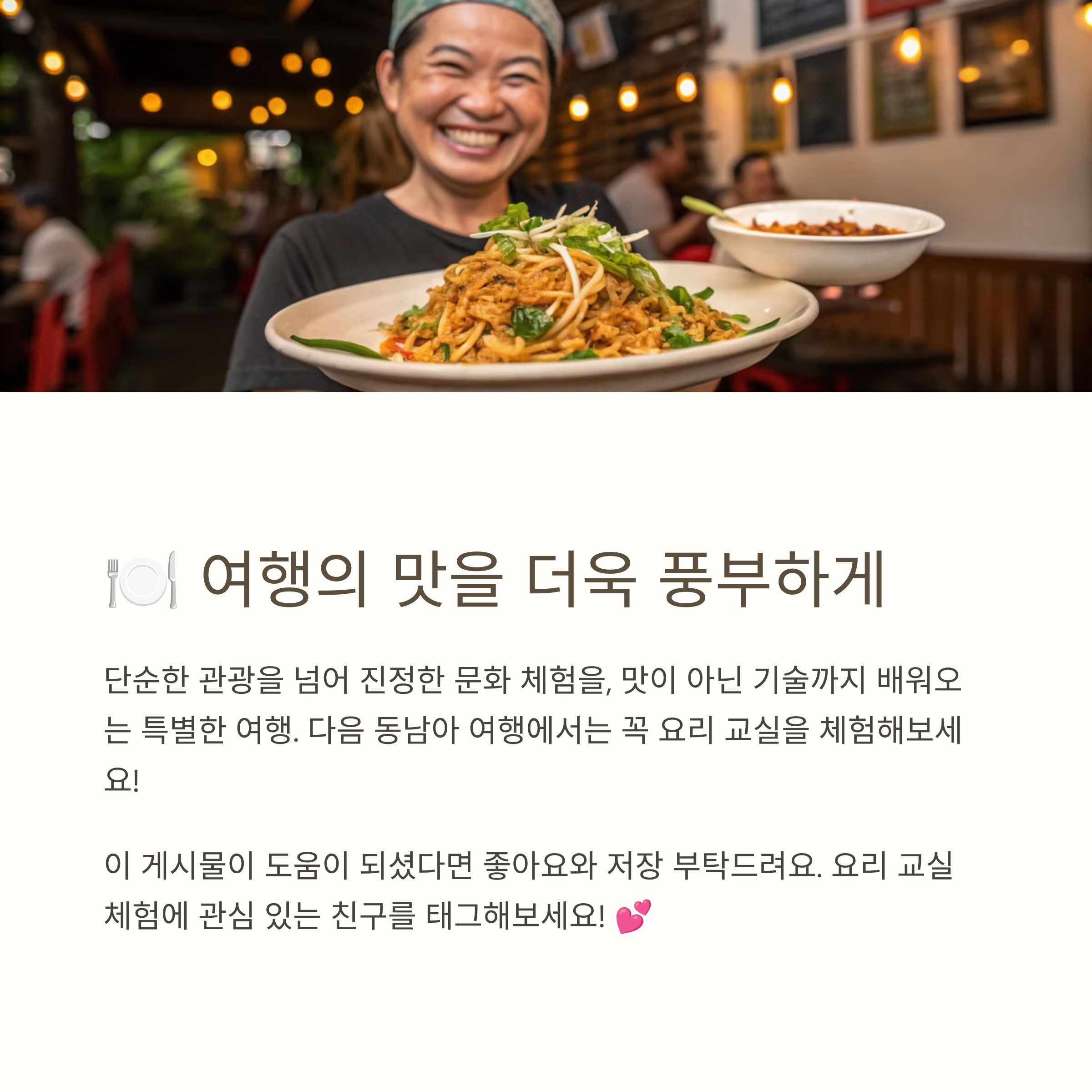 요리 교실은 당신의 여행을 더욱 특별하게 만들 거예요! 💖