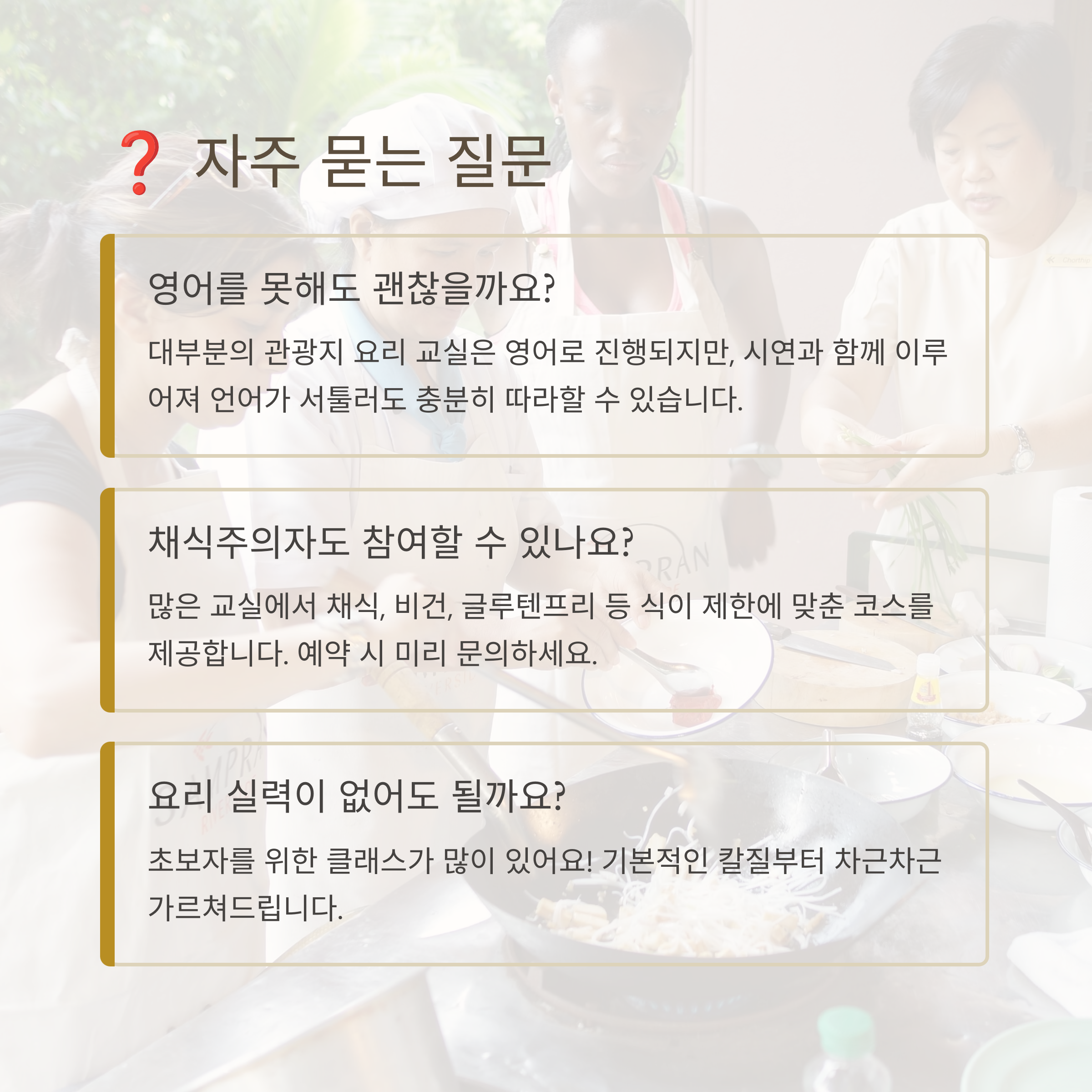 요리 교실은 당신의 여행을 더욱 특별하게 만들 거예요! 💖